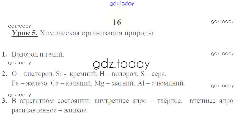 На страницах сайта gdz.today вы найдете учебный и вспомогательный материал, направленный на улучшения знаний школьной программы. ГДЗ - онлайн мир знаний Решение к уроку 5. Химическая организация природы стр.16 Рабочей тетради по Химии для 9 класса Микитюк Дрофа УМК 2014