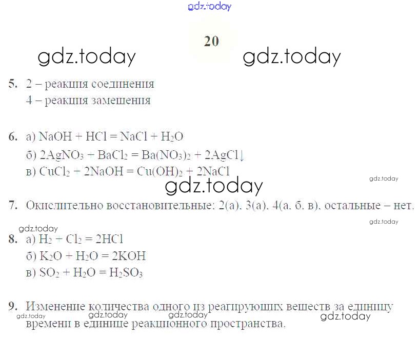 На страницах сайта gdz.today вы найдете учебный и вспомогательный материал, направленный на улучшения знаний школьной программы. ГДЗ - онлайн мир знаний Решение к уроку 6. Химические реакции. Скорость химической реакции стр.20 Рабочей тетради по Химии для 9 класса Микитюк Дрофа УМК 2014