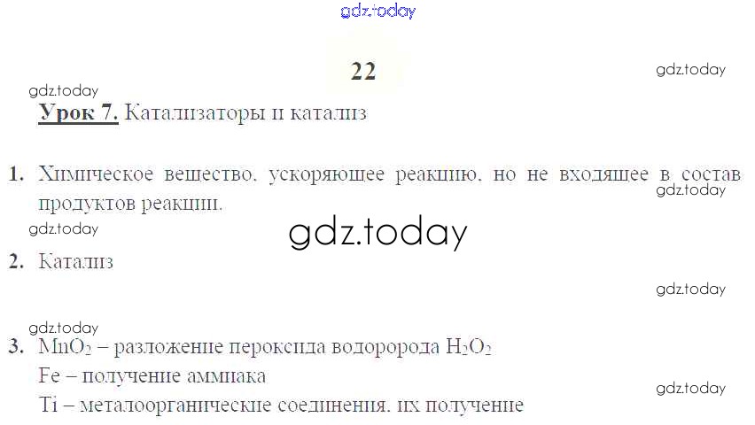 Ответы к Решение к уроку 7. Катализаторы и катализ стр.22 Рабочей тетради по Химии для 9 класса Микитюк Дрофа УМК 2014
