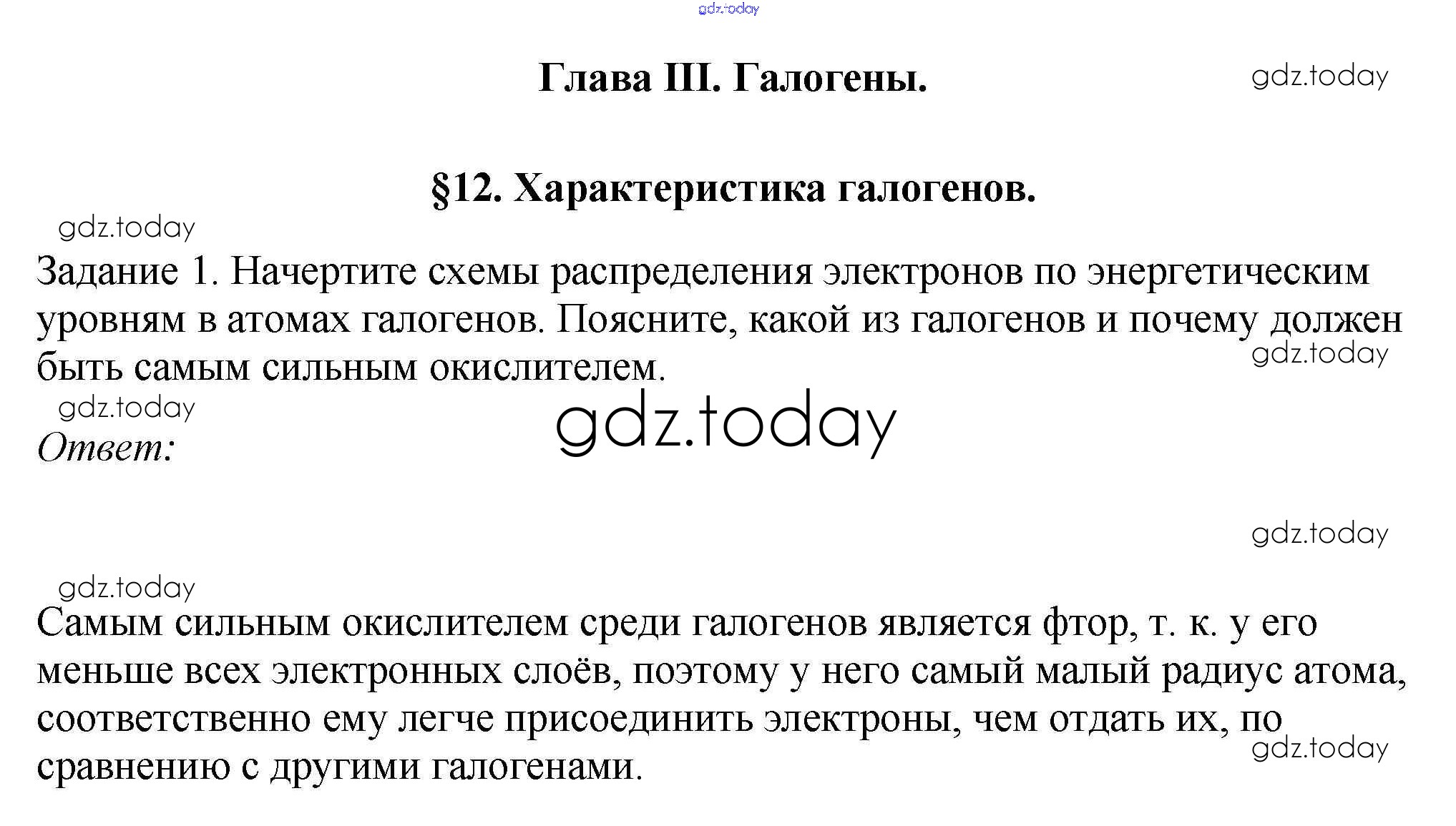 На страницах сайта gdz.today вы найдете учебный и вспомогательный материал, направленный на улучшения знаний школьной программы. ГДЗ - онлайн мир знаний § 12. Характеристика галогенов Решение к новому изданию 1 Учебнику по Химии для 9 класса Рудзитис, Фельдман Просвещение УМК 2016