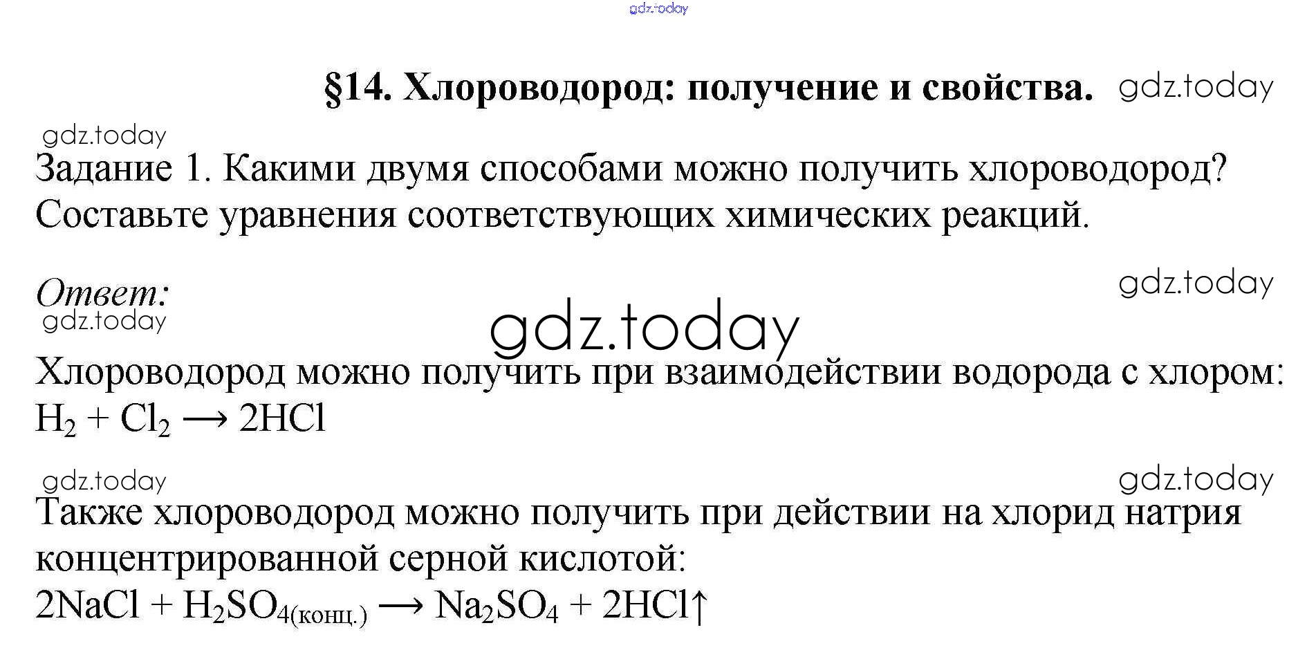 На страницах сайта gdz.today вы найдете учебный и вспомогательный материал, направленный на улучшения знаний школьной программы. ГДЗ - онлайн мир знаний § 14. Хлороводород - получение и свойства Решение к новому изданию 1 Учебнику по Химии для 9 класса Рудзитис, Фельдман Просвещение УМК 2016