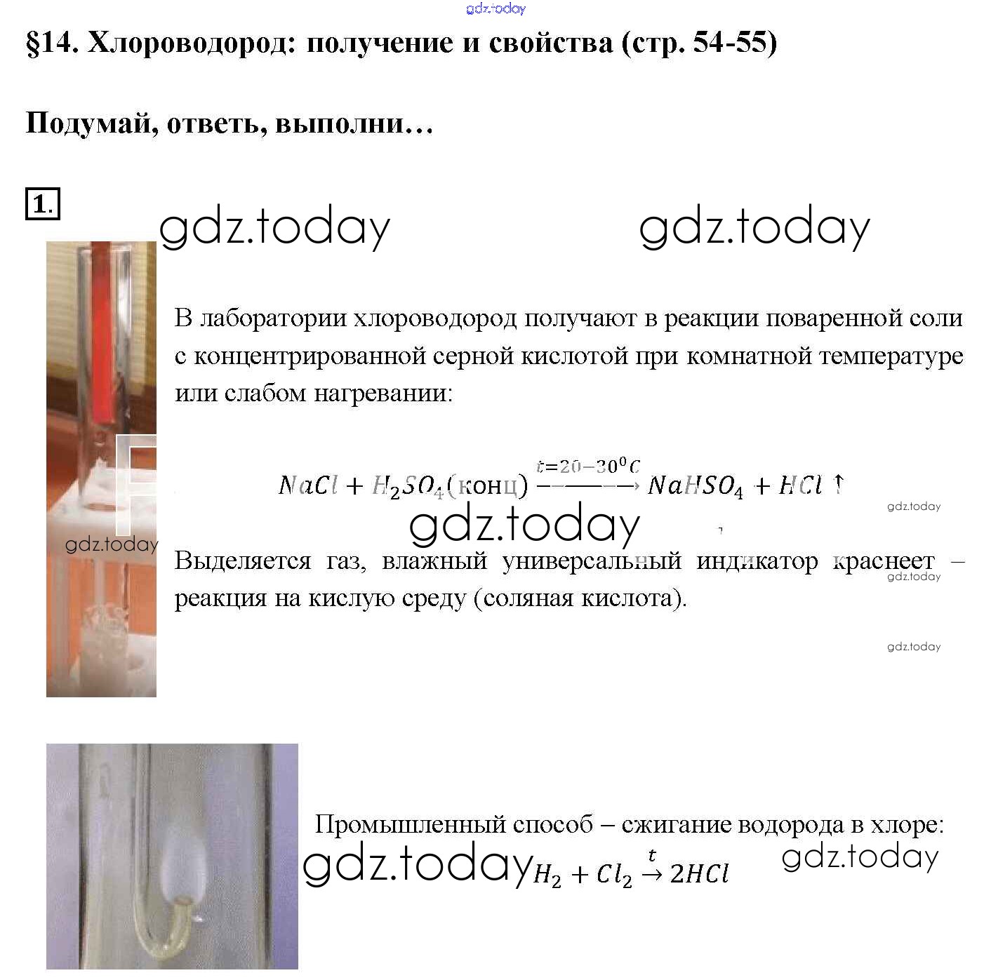 Ответы к § 14. Хлороводород - получение и свойства Решение к новому изданию 1 Учебнику по Химии для 9 класса Рудзитис, Фельдман Просвещение УМК 2016