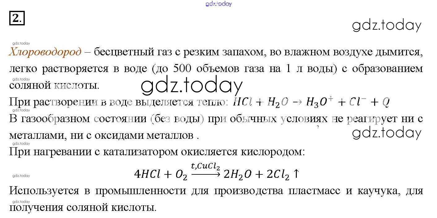 На страницах сайта gdz.today вы найдете учебный и вспомогательный материал, направленный на улучшения знаний школьной программы. ГДЗ - онлайн мир знаний § 14. Хлороводород - получение и свойства Решение к новому изданию 2 Учебнику по Химии для 9 класса Рудзитис, Фельдман Просвещение УМК 2016