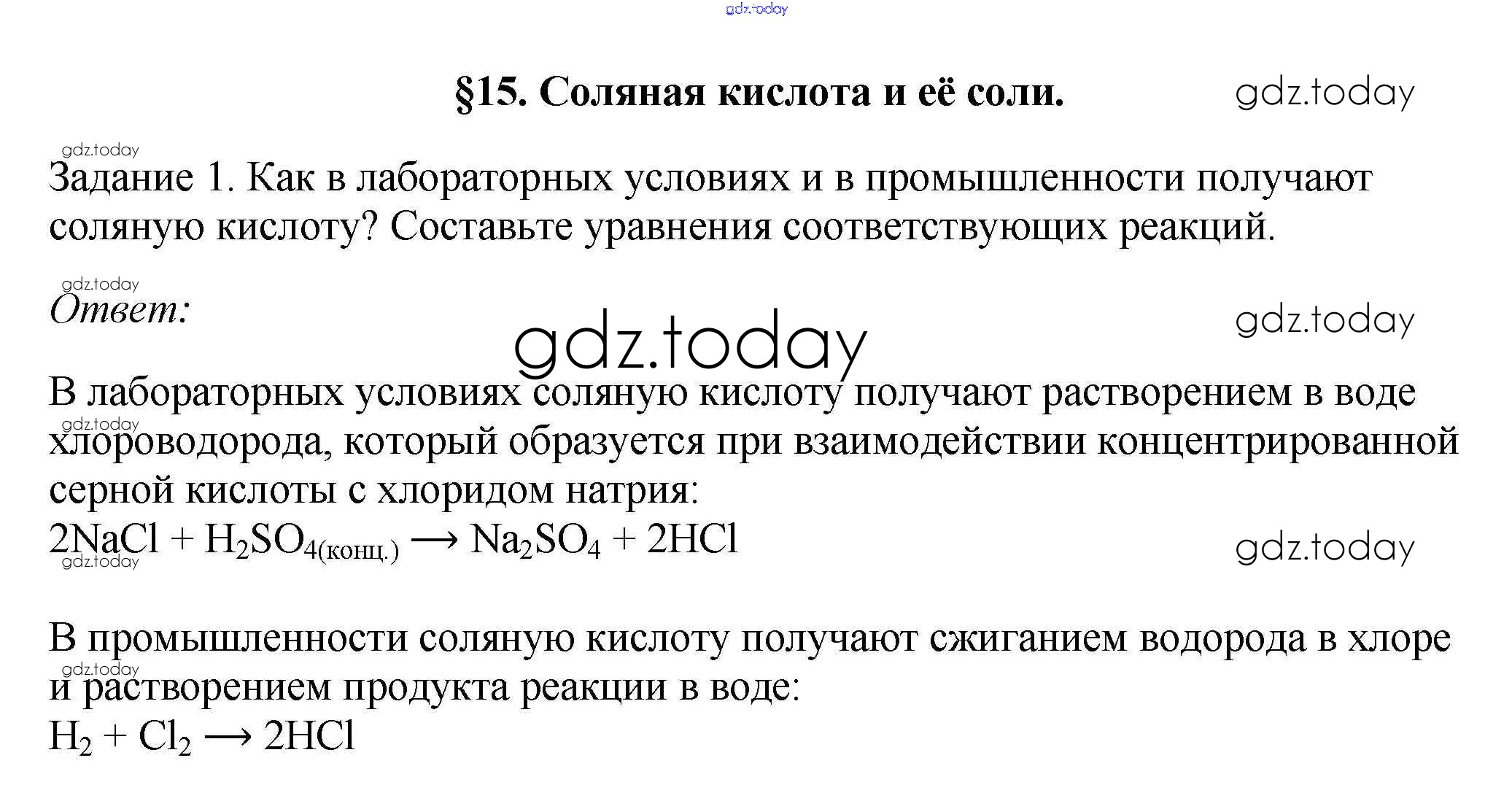 Ответы к § 15. Соляная кислота и её соли Решение к новому изданию 1 Учебнику по Химии для 9 класса Рудзитис, Фельдман Просвещение УМК 2016