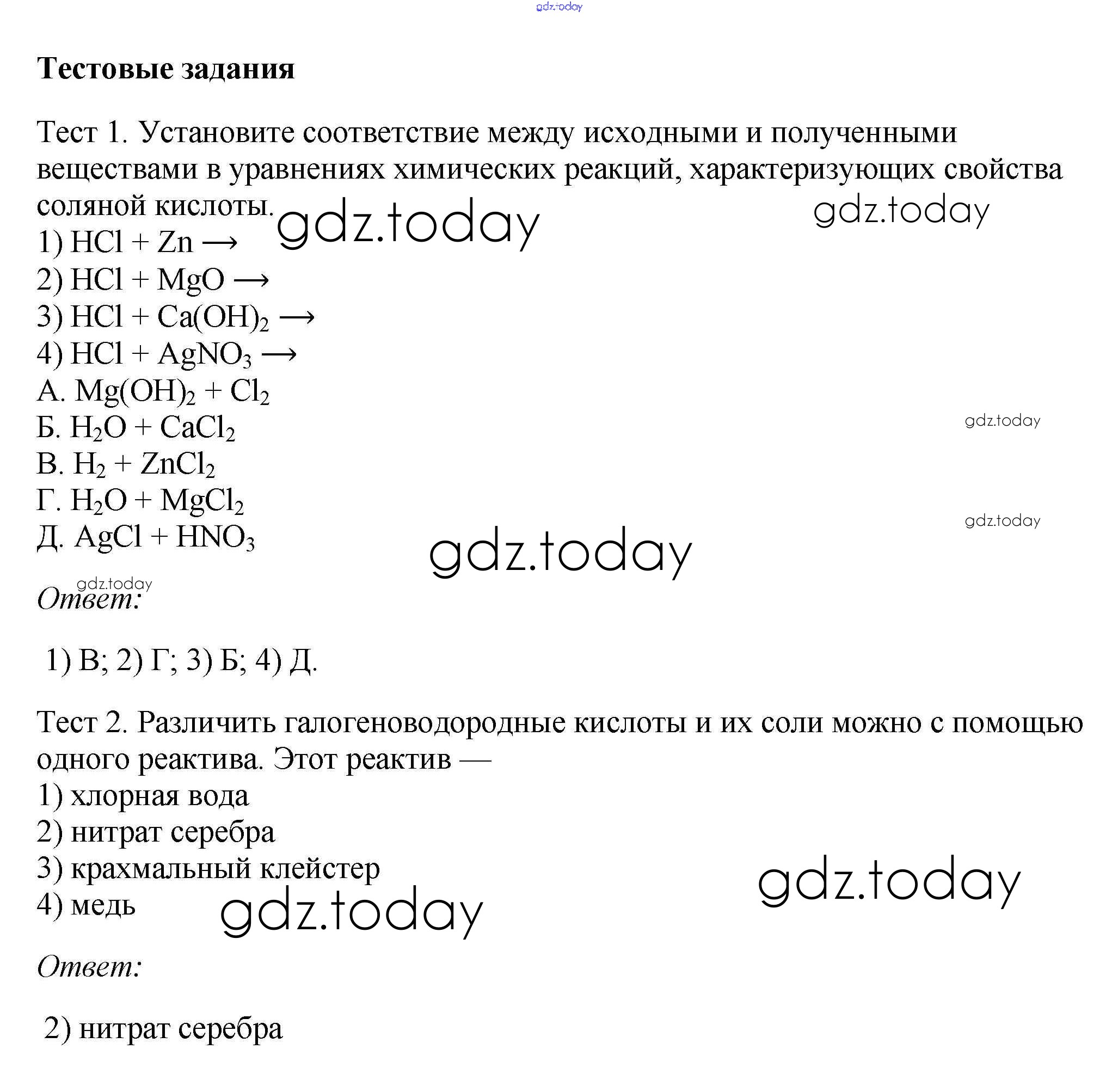 Ответы к § 15. Соляная кислота и её соли Решение к новому изданию тестовое задание Учебнику по Химии для 9 класса Рудзитис, Фельдман Просвещение УМК 2016