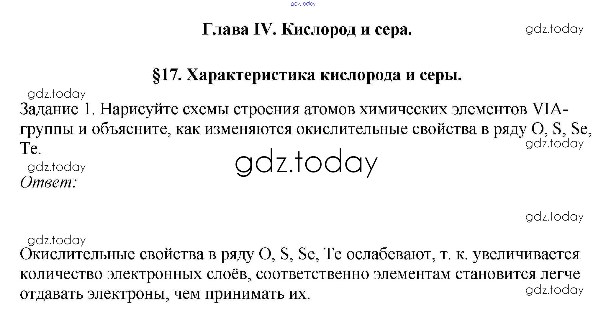 Ответы к § 17. Характеристика кислорода и серы Решение к новому изданию 1 Учебнику по Химии для 9 класса Рудзитис, Фельдман Просвещение УМК 2016
