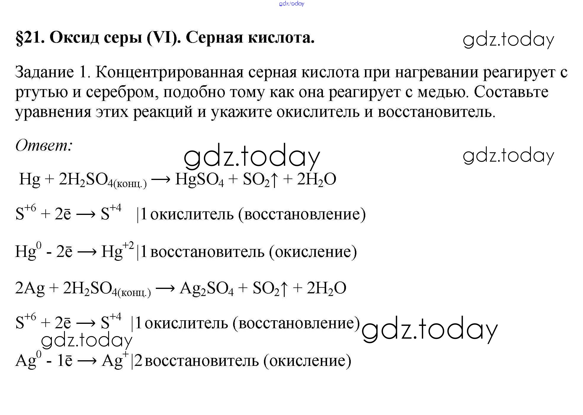 На страницах сайта gdz.today вы найдете учебный и вспомогательный материал, направленный на улучшения знаний школьной программы. ГДЗ - онлайн мир знаний § 21. Оксид серы (VI). Серная кислота Решение к новому изданию 1 Учебнику по Химии для 9 класса Рудзитис, Фельдман Просвещение УМК 2016