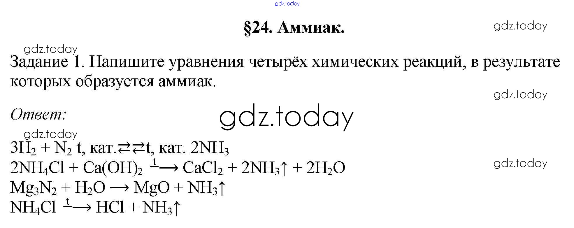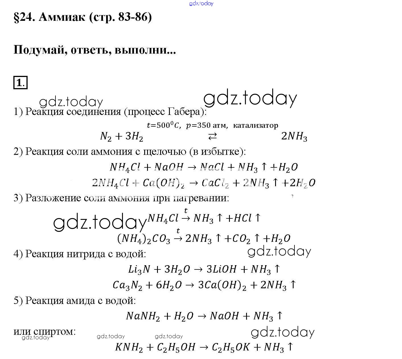 Ответы к § 24. Аммиак Решение к новому изданию 1 Учебнику по Химии для 9 класса Рудзитис, Фельдман Просвещение УМК 2016