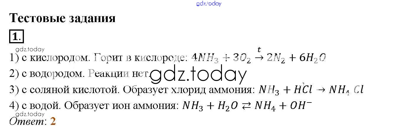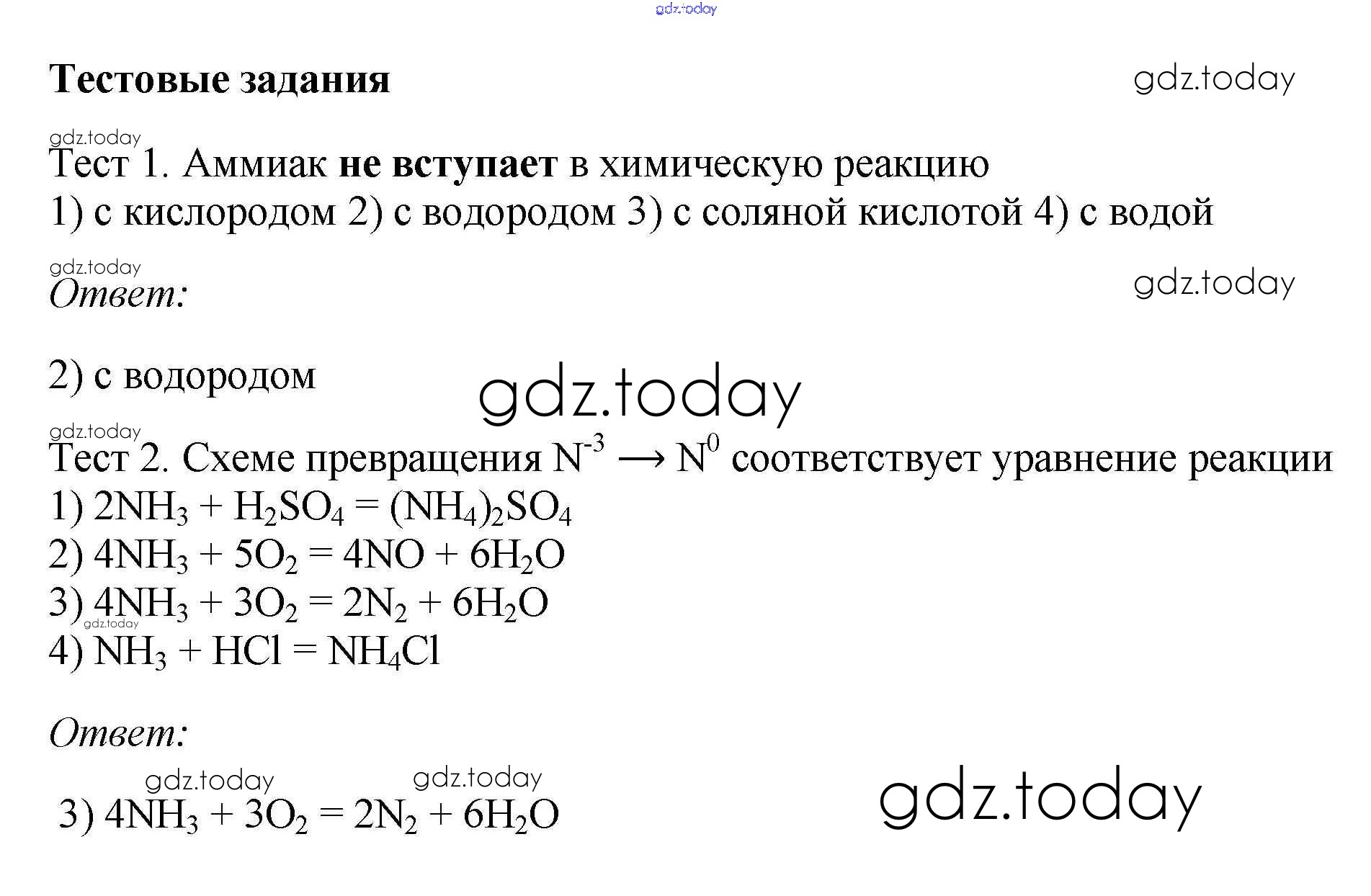 На страницах сайта gdz.today вы найдете учебный и вспомогательный материал, направленный на улучшения знаний школьной программы. ГДЗ - онлайн мир знаний § 24. Аммиак Решение к новому изданию тестовое задание Учебнику по Химии для 9 класса Рудзитис, Фельдман Просвещение УМК 2016