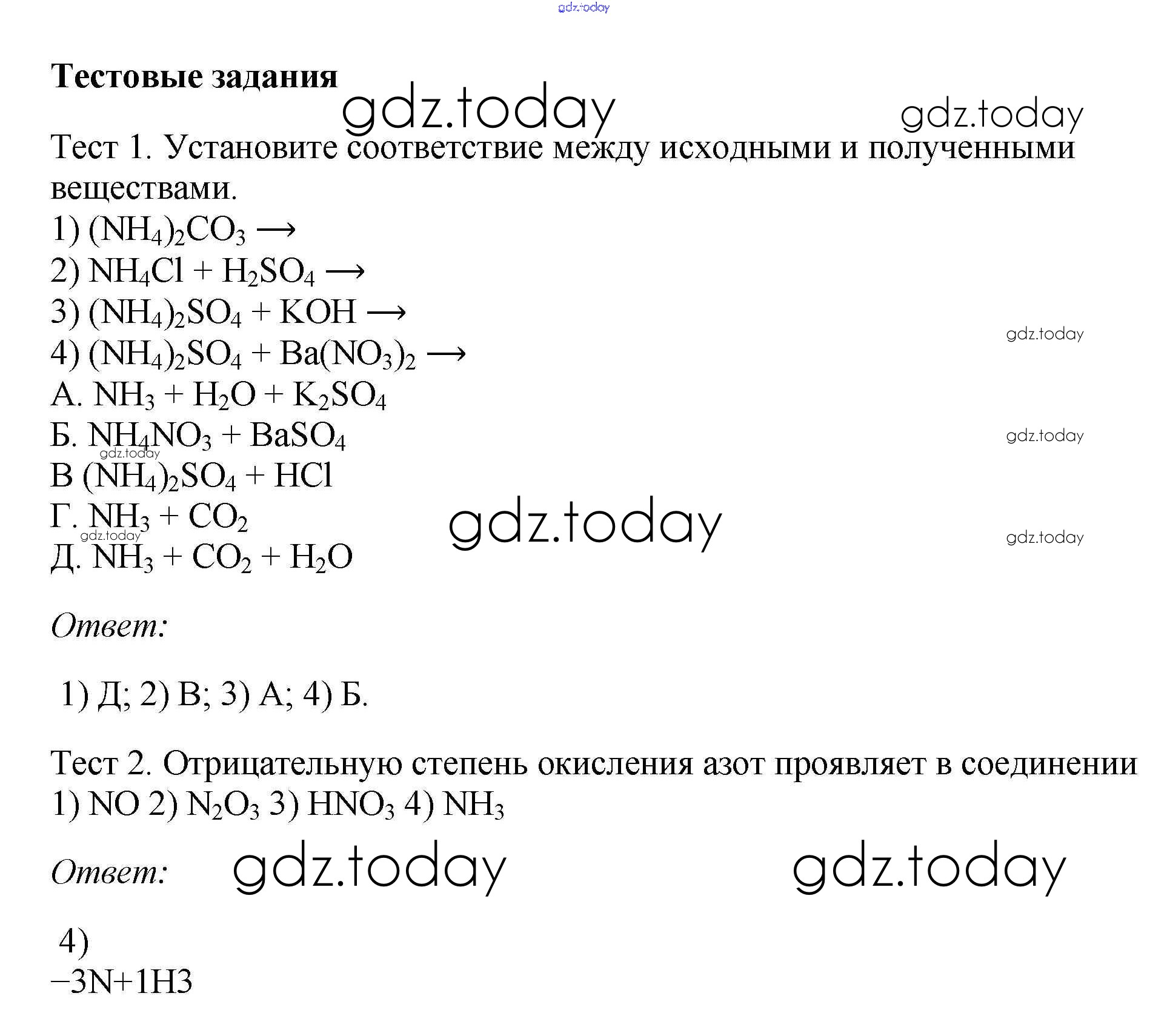 Ответы к § 26. Соли аммония Решение к новому изданию тестовое задание Учебнику по Химии для 9 класса Рудзитис, Фельдман Просвещение УМК 2016