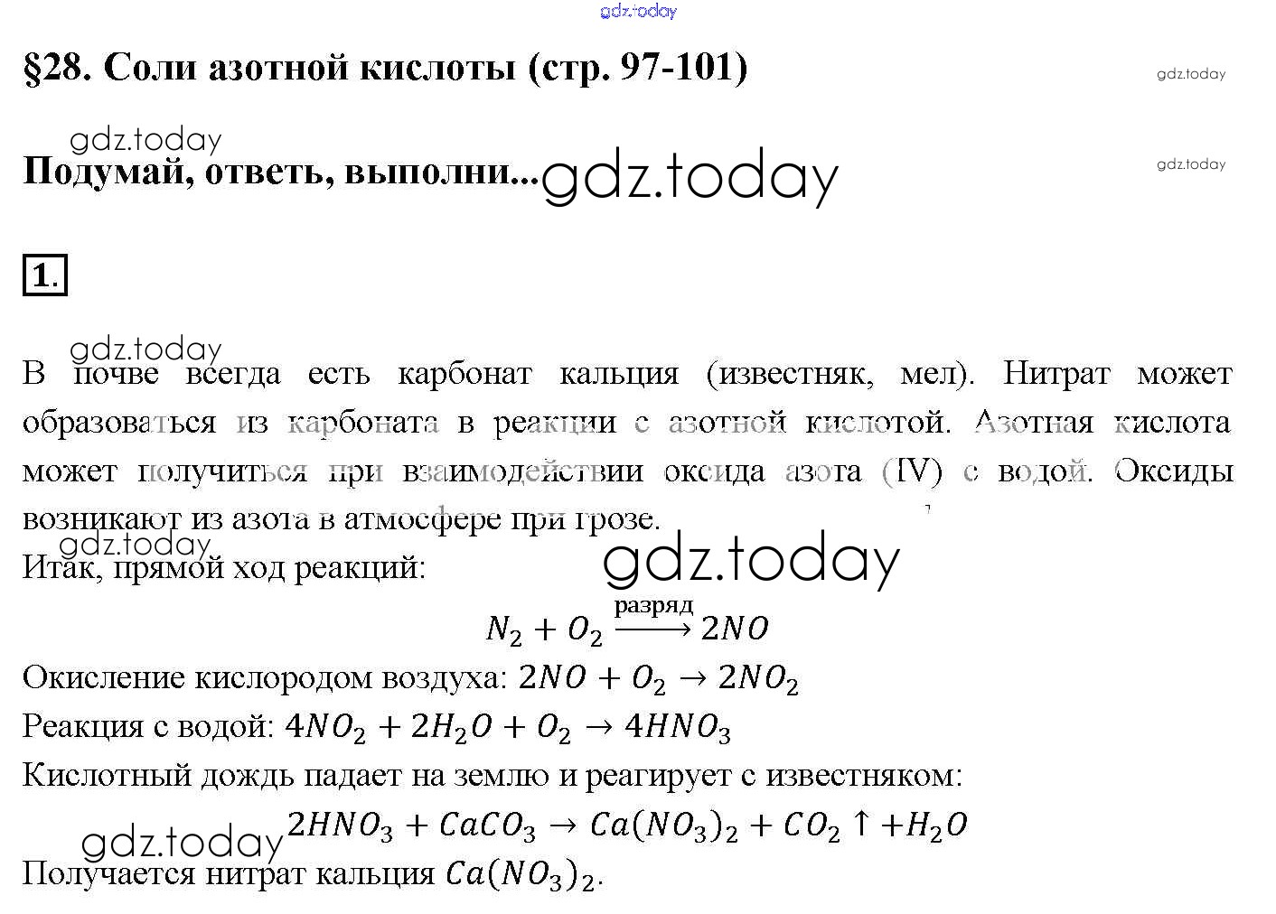 На страницах сайта gdz.today вы найдете учебный и вспомогательный материал, направленный на улучшения знаний школьной программы. ГДЗ - онлайн мир знаний § 28. Соли азотной кислоты Решение к новому изданию 1 Учебнику по Химии для 9 класса Рудзитис, Фельдман Просвещение УМК 2016