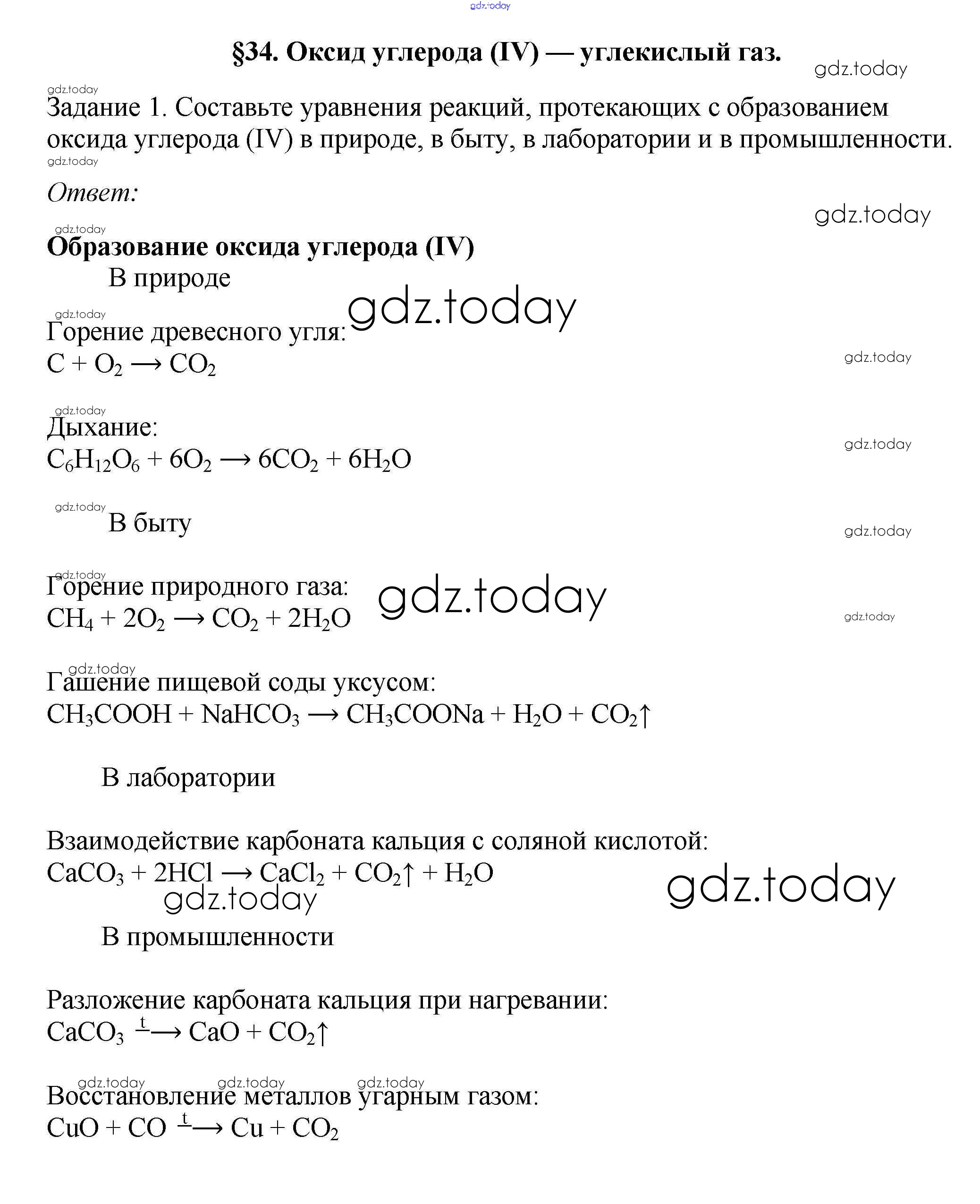 Ответы к § 34. Оксид углерода (IV) – углекислый газ Решение к новому изданию 1 Учебнику по Химии для 9 класса Рудзитис, Фельдман Просвещение УМК 2016