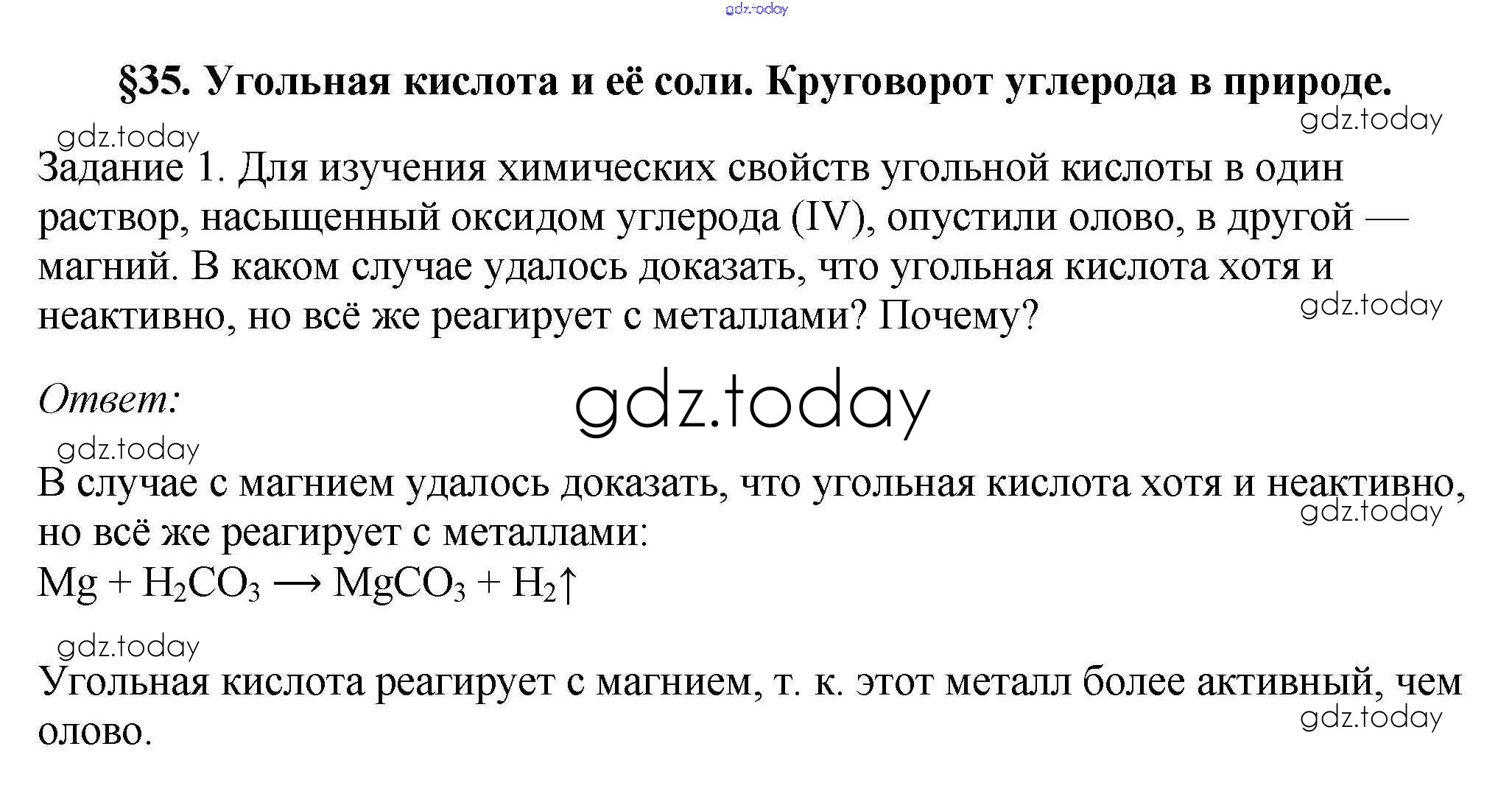Ответы к § 35. Угольная кислота и ее соли Решение к новому изданию 1 Учебнику по Химии для 9 класса Рудзитис, Фельдман Просвещение УМК 2016