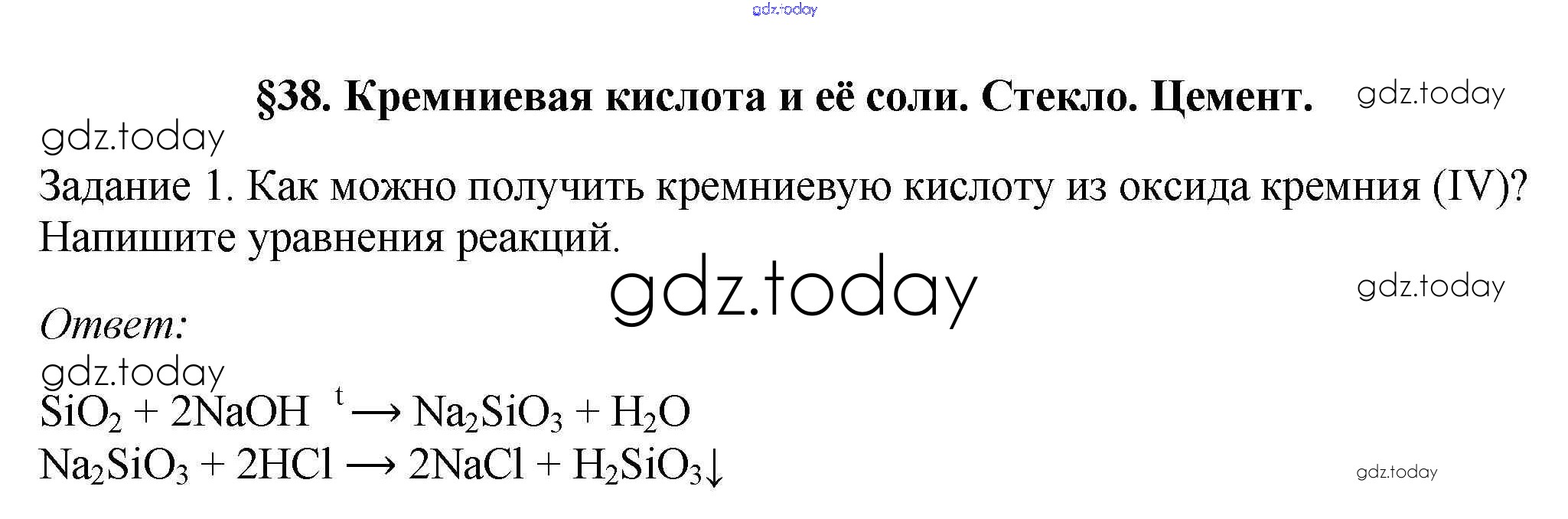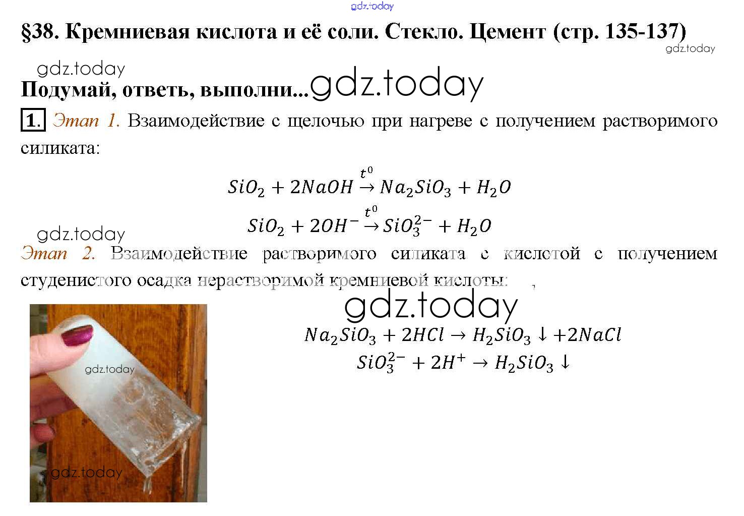 На страницах сайта gdz.today вы найдете учебный и вспомогательный материал, направленный на улучшения знаний школьной программы. ГДЗ - онлайн мир знаний § 38. Кремниевая кислота и ее соли. Стекло. Цемент Решение к новому изданию 1 Учебнику по Химии для 9 класса Рудзитис, Фельдман Просвещение УМК 2016