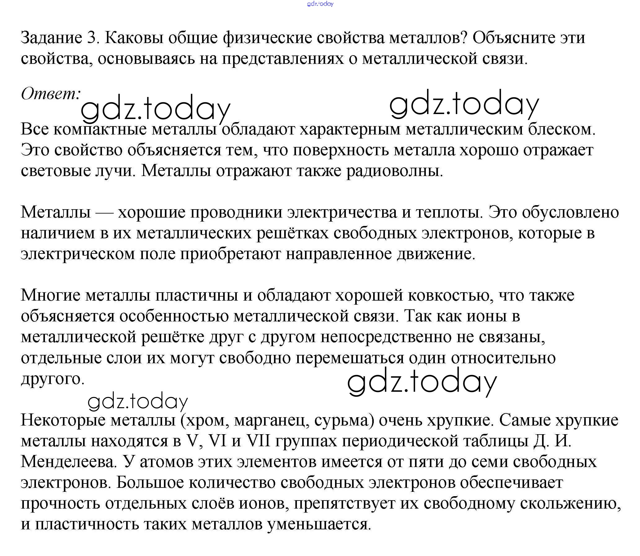 На страницах сайта gdz.today вы найдете учебный и вспомогательный материал, направленный на улучшения знаний школьной программы. ГДЗ - онлайн мир знаний § 39. Характеристика металлов Решение к новому изданию 3 Учебнику по Химии для 9 класса Рудзитис, Фельдман Просвещение УМК 2016