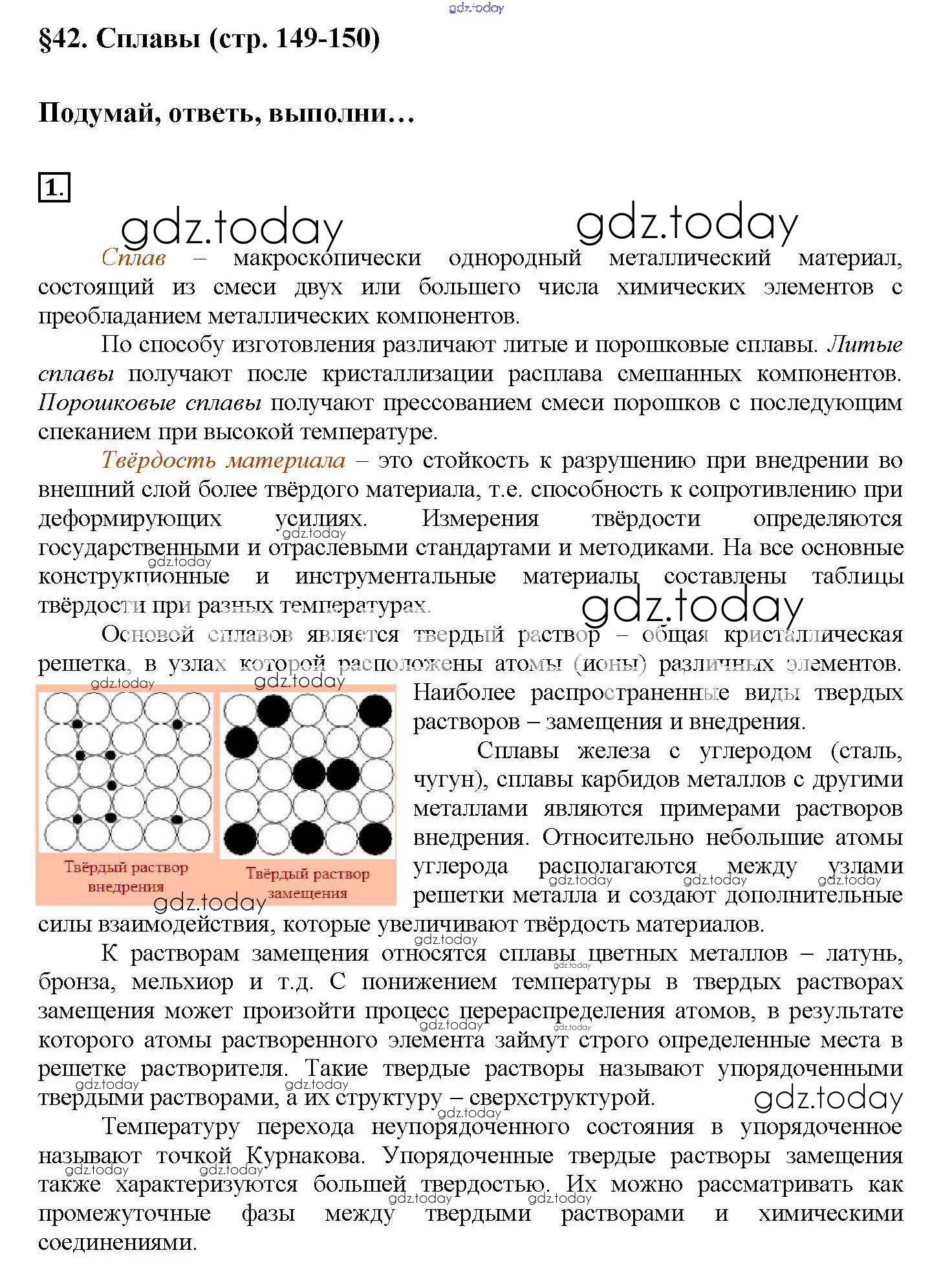 На страницах сайта gdz.today вы найдете учебный и вспомогательный материал, направленный на улучшения знаний школьной программы. ГДЗ - онлайн мир знаний § 42. Сплавы Решение к новому изданию 1 Учебнику по Химии для 9 класса Рудзитис, Фельдман Просвещение УМК 2016