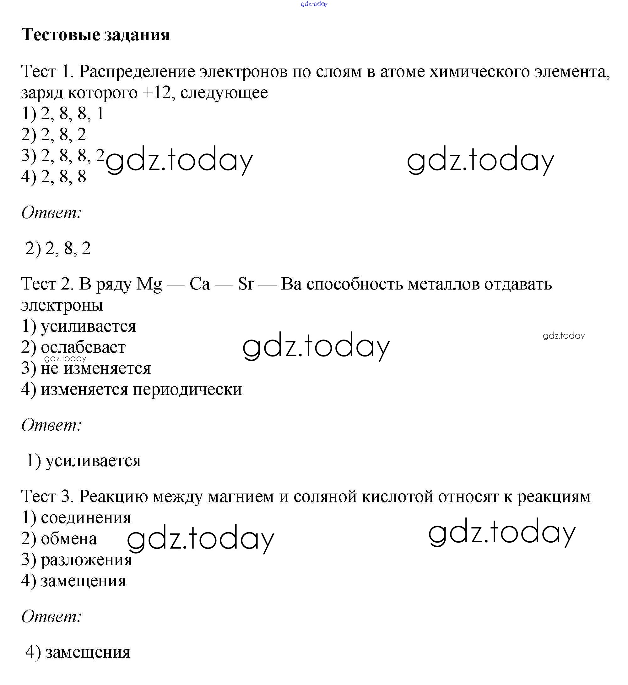 На страницах сайта gdz.today вы найдете учебный и вспомогательный материал, направленный на улучшения знаний школьной программы. ГДЗ - онлайн мир знаний § 44. Магний. Щелочноземельные металлы Решение к новому изданию тестовое задание Учебнику по Химии для 9 класса Рудзитис, Фельдман Просвещение УМК 2016