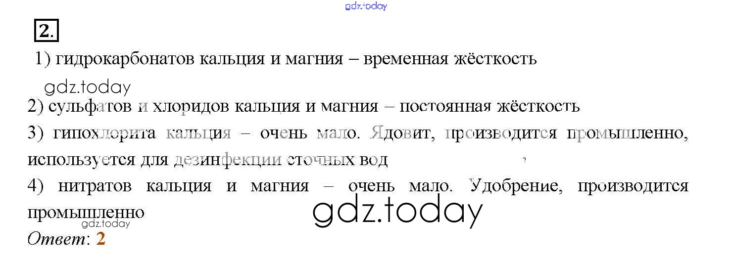 На страницах сайта gdz.today вы найдете учебный и вспомогательный материал, направленный на улучшения знаний школьной программы. ГДЗ - онлайн мир знаний § 45. Важнейшие соединения кальция. Жесткость воды Решение к новому изданию тестовое задание Учебнику по Химии для 9 класса Рудзитис, Фельдман Просвещение УМК 2016