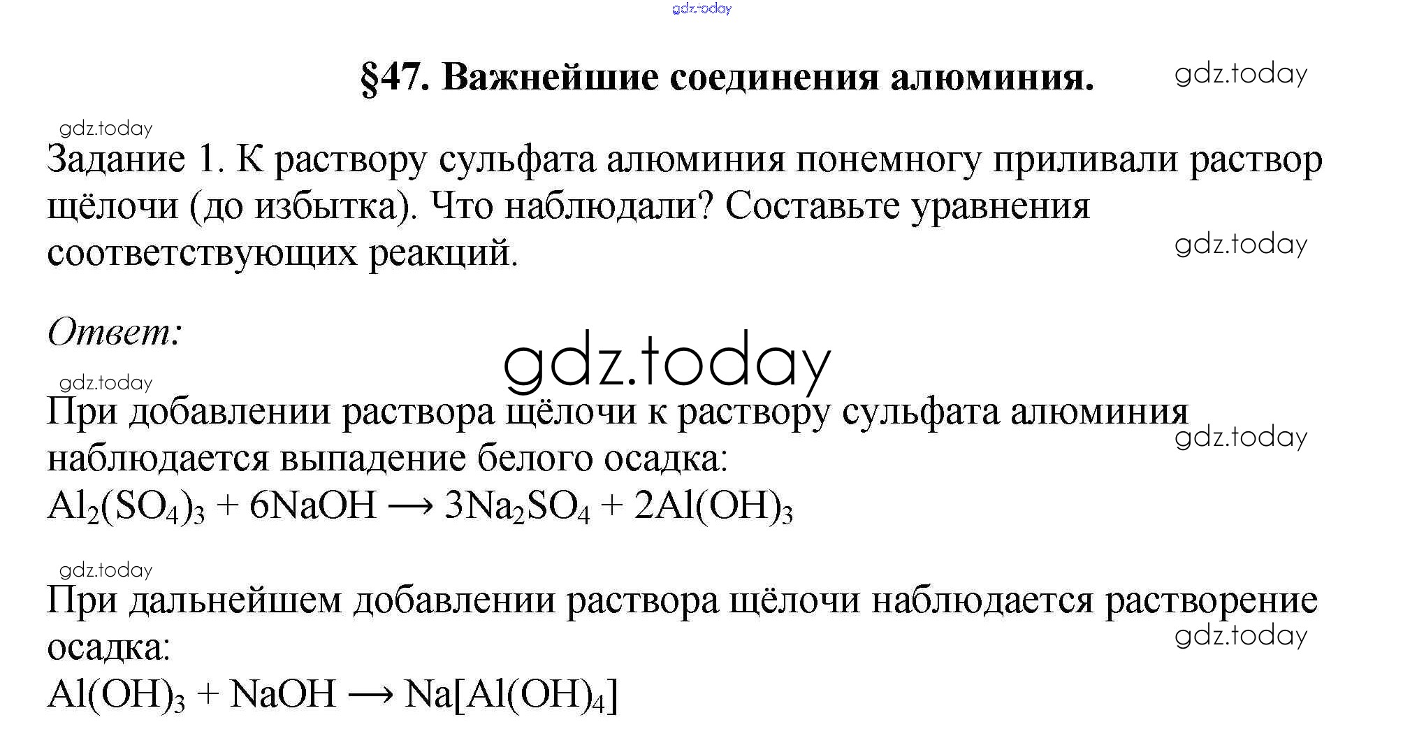 На страницах сайта gdz.today вы найдете учебный и вспомогательный материал, направленный на улучшения знаний школьной программы. ГДЗ - онлайн мир знаний § 47. Важнейшие соединения алюминия Решение к новому изданию 1 Учебнику по Химии для 9 класса Рудзитис, Фельдман Просвещение УМК 2016