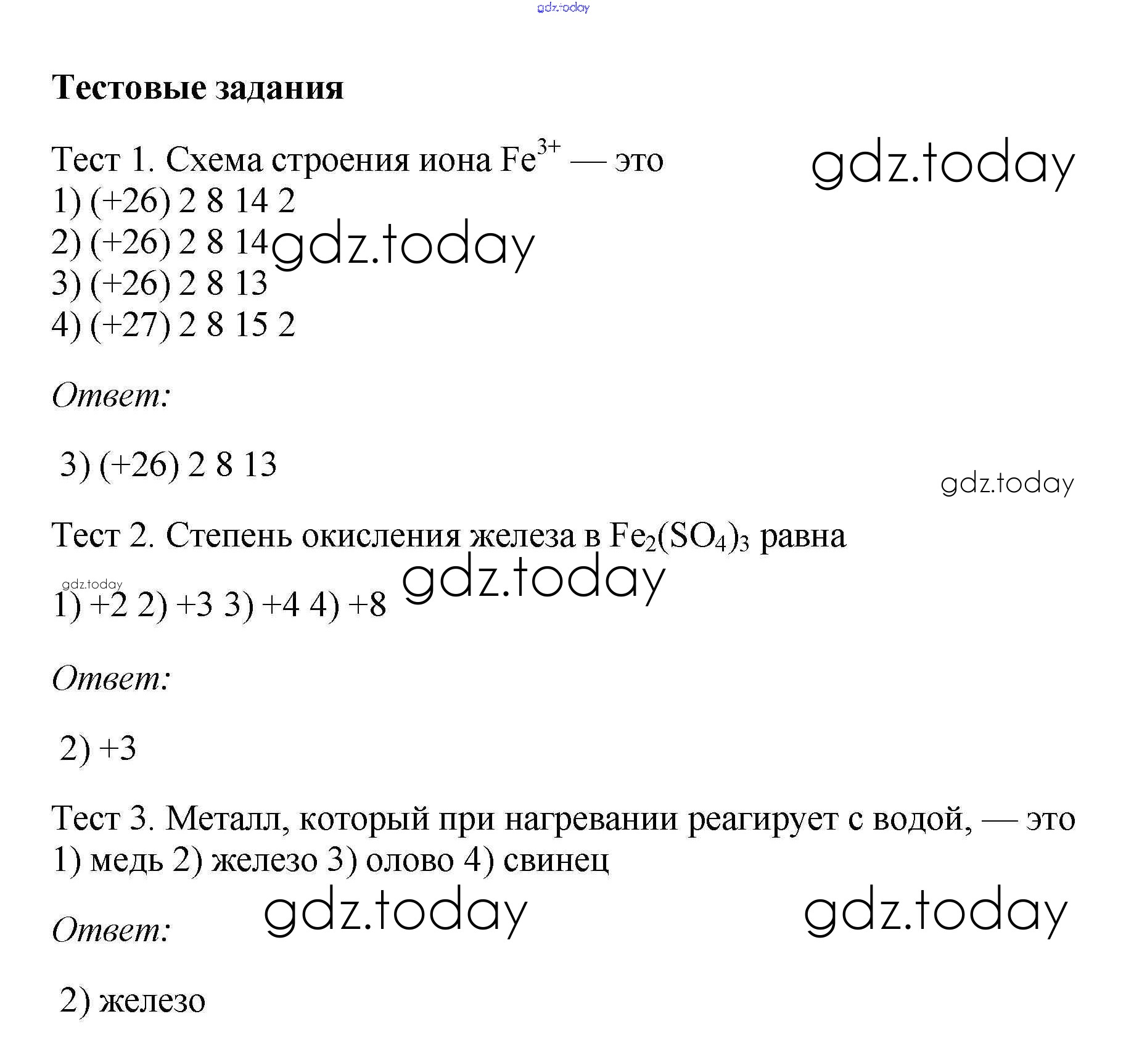 На страницах сайта gdz.today вы найдете учебный и вспомогательный материал, направленный на улучшения знаний школьной программы. ГДЗ - онлайн мир знаний § 48. Железо Решение к новому изданию тестовое задание Учебнику по Химии для 9 класса Рудзитис, Фельдман Просвещение УМК 2016
