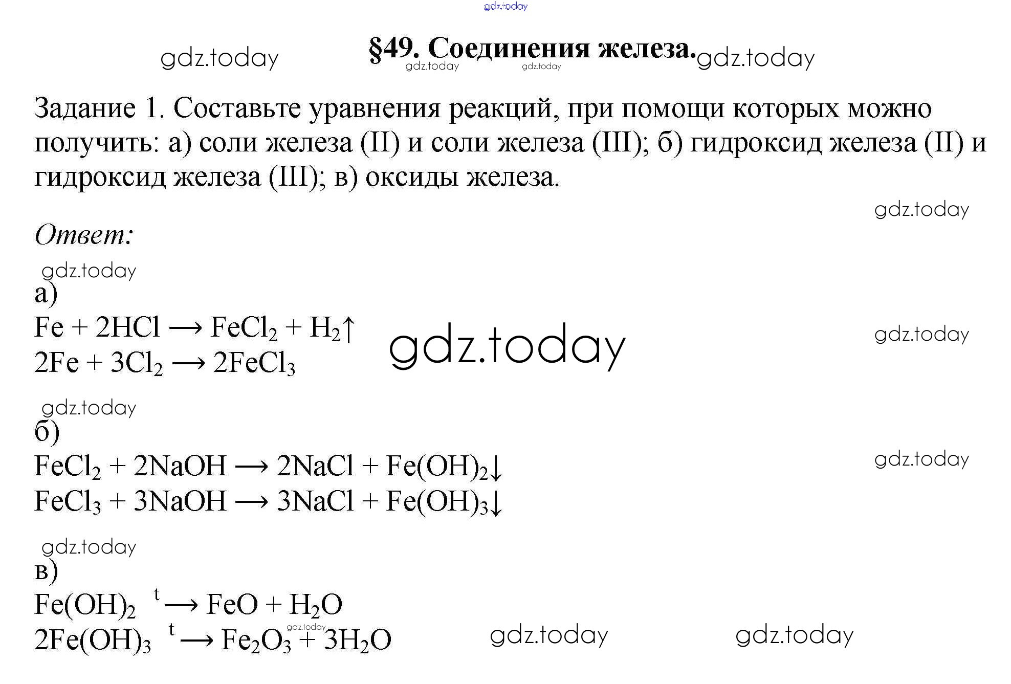 На страницах сайта gdz.today вы найдете учебный и вспомогательный материал, направленный на улучшения знаний школьной программы. ГДЗ - онлайн мир знаний § 49. Соединения железа Решение к новому изданию 1 Учебнику по Химии для 9 класса Рудзитис, Фельдман Просвещение УМК 2016