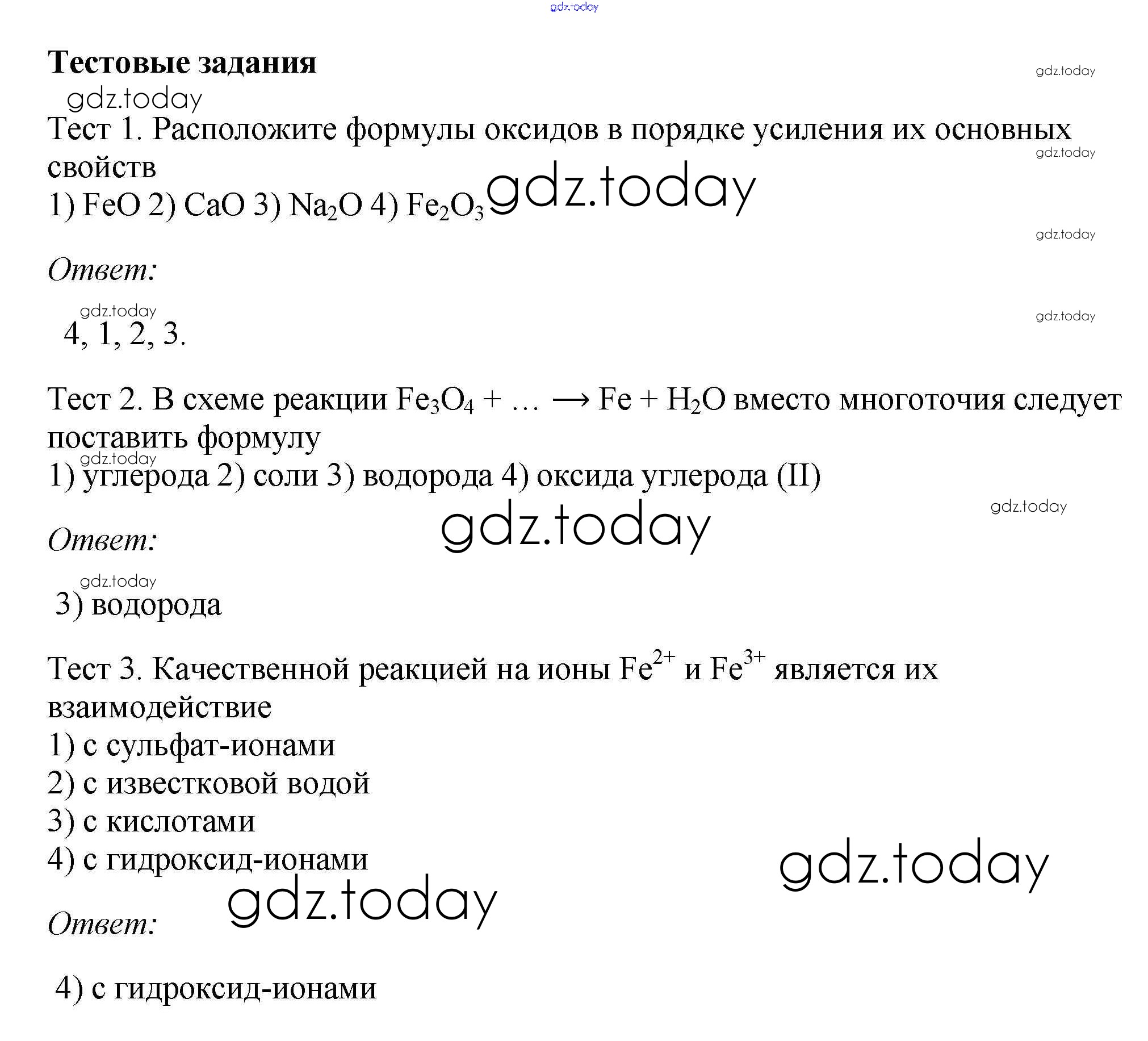 На страницах сайта gdz.today вы найдете учебный и вспомогательный материал, направленный на улучшения знаний школьной программы. ГДЗ - онлайн мир знаний § 49. Соединения железа Решение к новому изданию тестовое задание Учебнику по Химии для 9 класса Рудзитис, Фельдман Просвещение УМК 2016