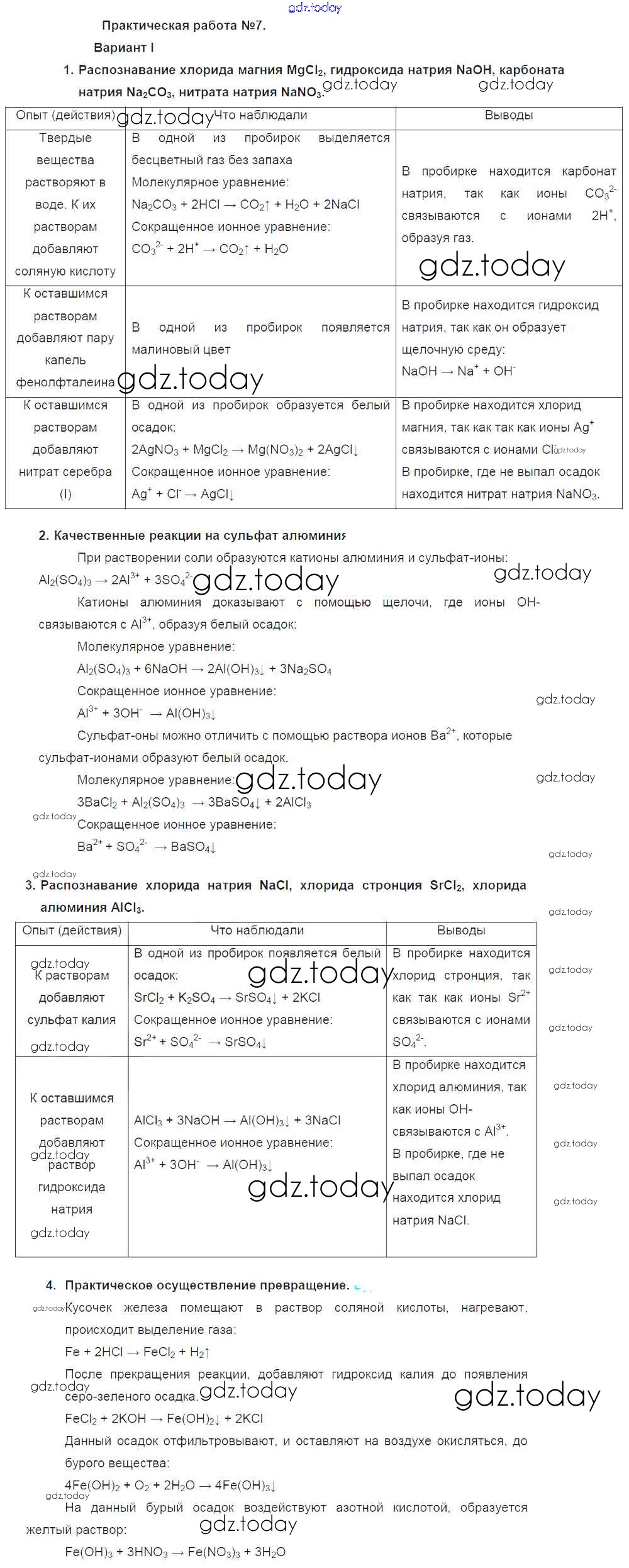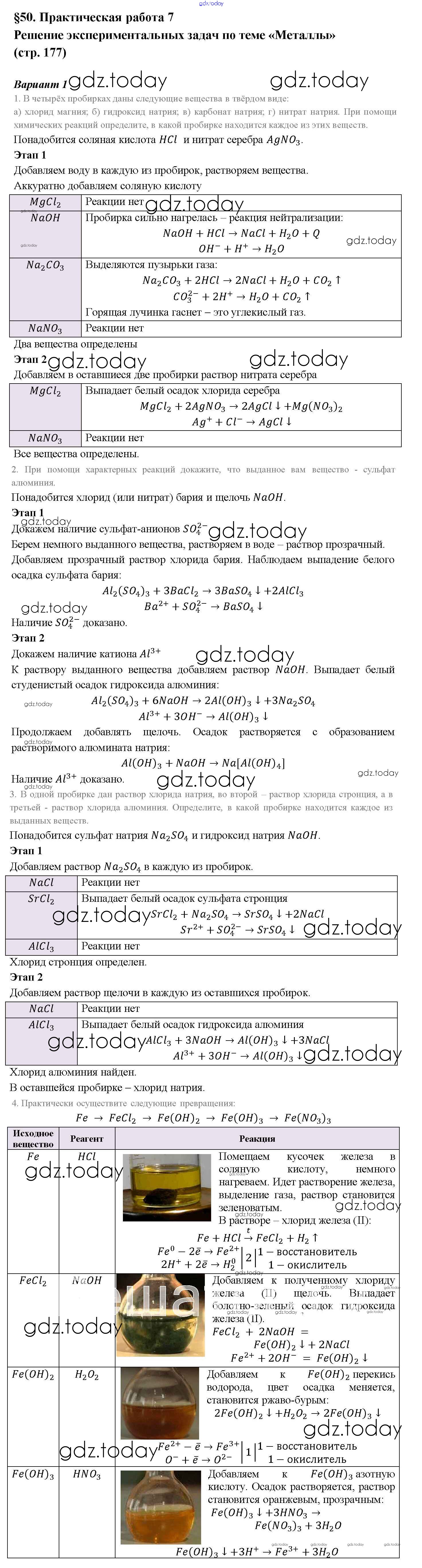 На страницах сайта gdz.today вы найдете учебный и вспомогательный материал, направленный на улучшения знаний школьной программы. ГДЗ - онлайн мир знаний § 50. Практическая работа №7 Решение к новому изданию вариант №1 Учебнику по Химии для 9 класса Рудзитис, Фельдман Просвещение УМК 2016