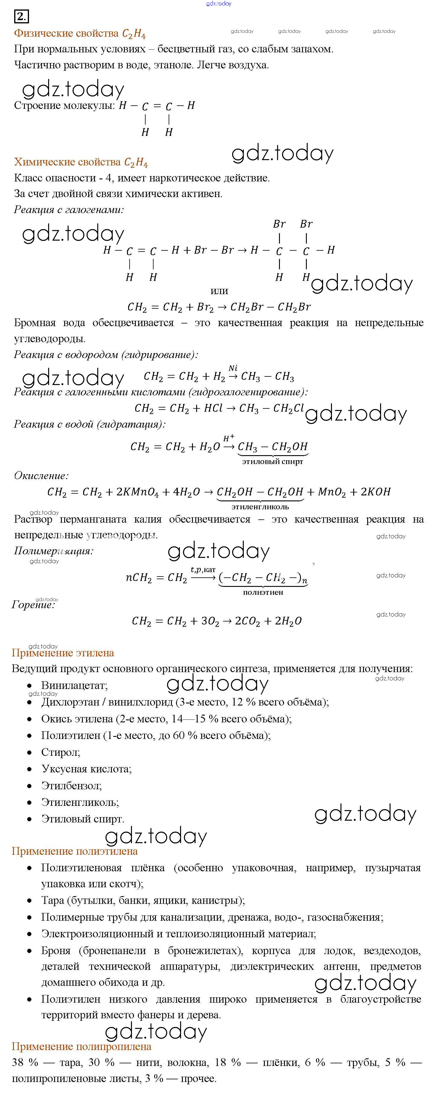 На страницах сайта gdz.today вы найдете учебный и вспомогательный материал, направленный на улучшения знаний школьной программы. ГДЗ - онлайн мир знаний § 53. Непредельные углеводороды Решение к новому изданию 2 Учебнику по Химии для 9 класса Рудзитис, Фельдман Просвещение УМК 2016