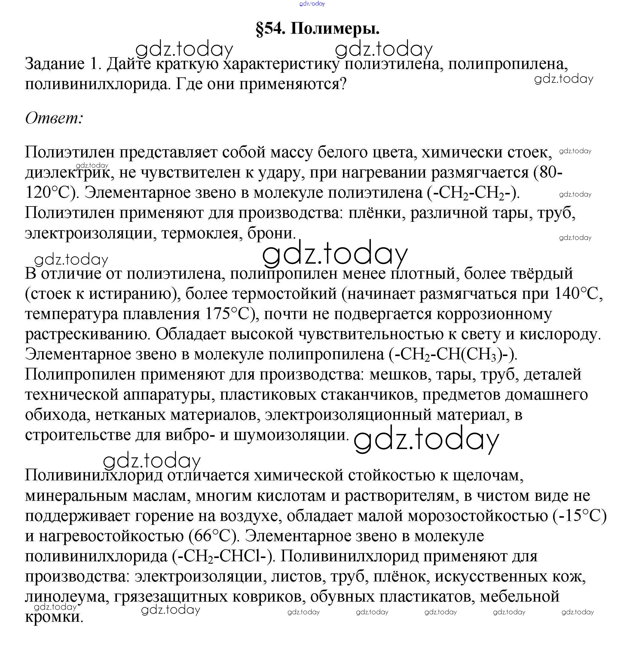 Ответы к § 54. Полимеры Решение к новому изданию 1 Учебнику по Химии для 9 класса Рудзитис, Фельдман Просвещение УМК 2016
