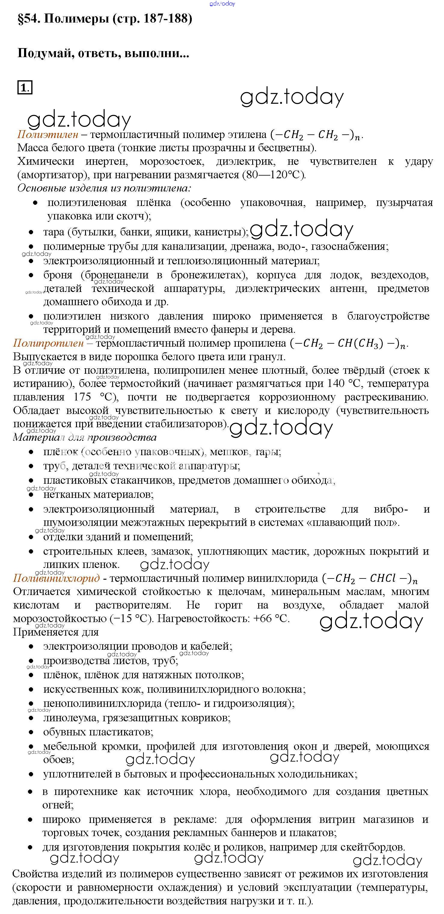 На страницах сайта gdz.today вы найдете учебный и вспомогательный материал, направленный на улучшения знаний школьной программы. ГДЗ - онлайн мир знаний § 54. Полимеры Решение к новому изданию 1 Учебнику по Химии для 9 класса Рудзитис, Фельдман Просвещение УМК 2016