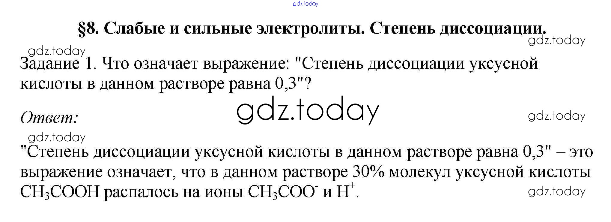 Ответы к § 8. Слабые и сильные электролиты. Степень диссоциаций Решение к новому изданию 1 Учебнику по Химии для 9 класса Рудзитис, Фельдман Просвещение УМК 2016