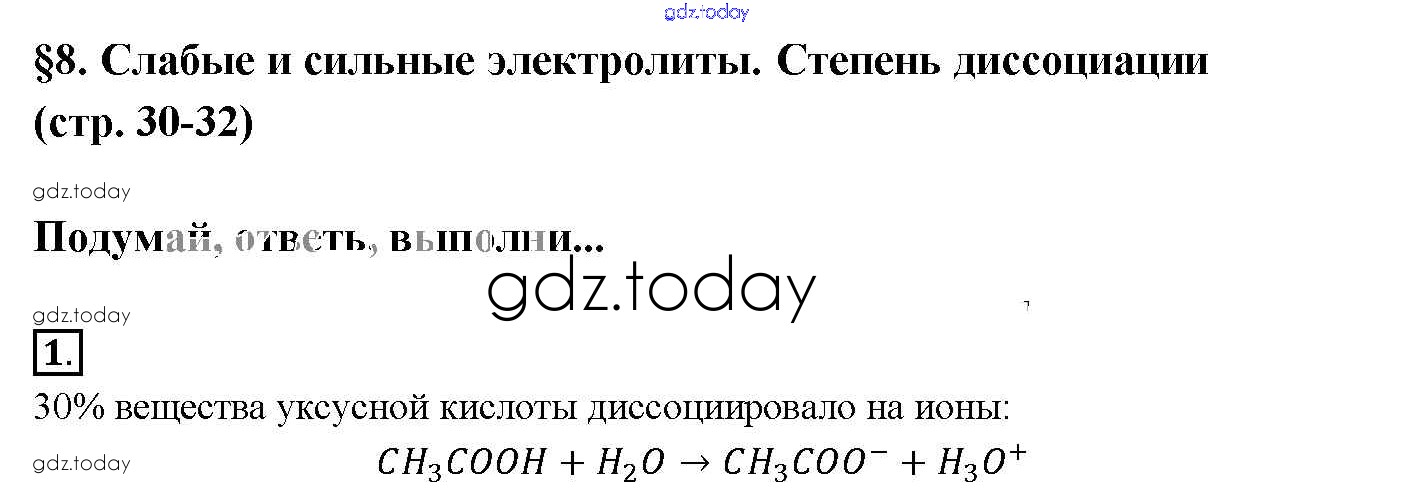 На страницах сайта gdz.today вы найдете учебный и вспомогательный материал, направленный на улучшения знаний школьной программы. ГДЗ - онлайн мир знаний § 8. Слабые и сильные электролиты. Степень диссоциаций Решение к новому изданию 1 Учебнику по Химии для 9 класса Рудзитис, Фельдман Просвещение УМК 2016