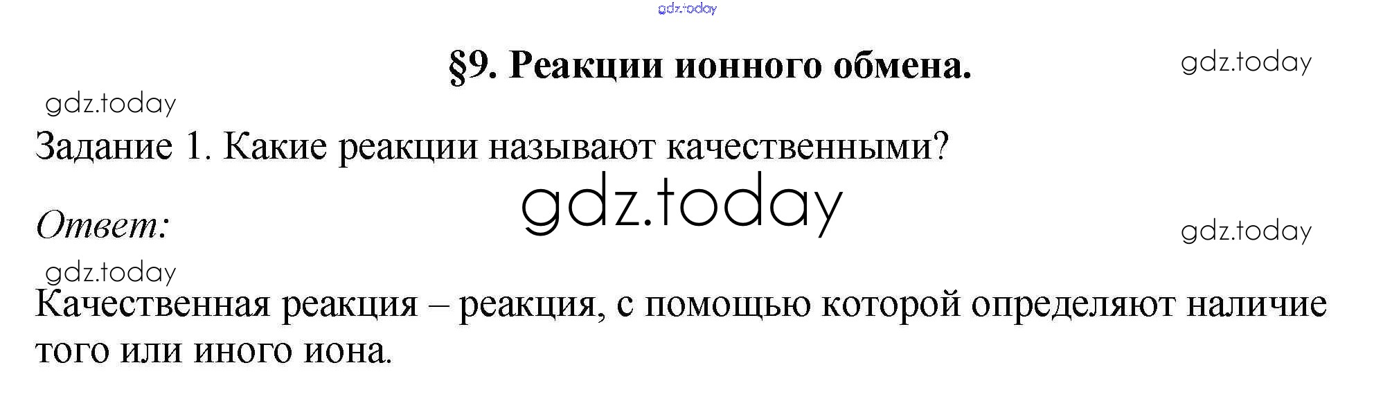 На страницах сайта gdz.today вы найдете учебный и вспомогательный материал, направленный на улучшения знаний школьной программы. ГДЗ - онлайн мир знаний § 9. Реакции ионного обмена Решение к новому изданию 1 Учебнику по Химии для 9 класса Рудзитис, Фельдман Просвещение УМК 2016