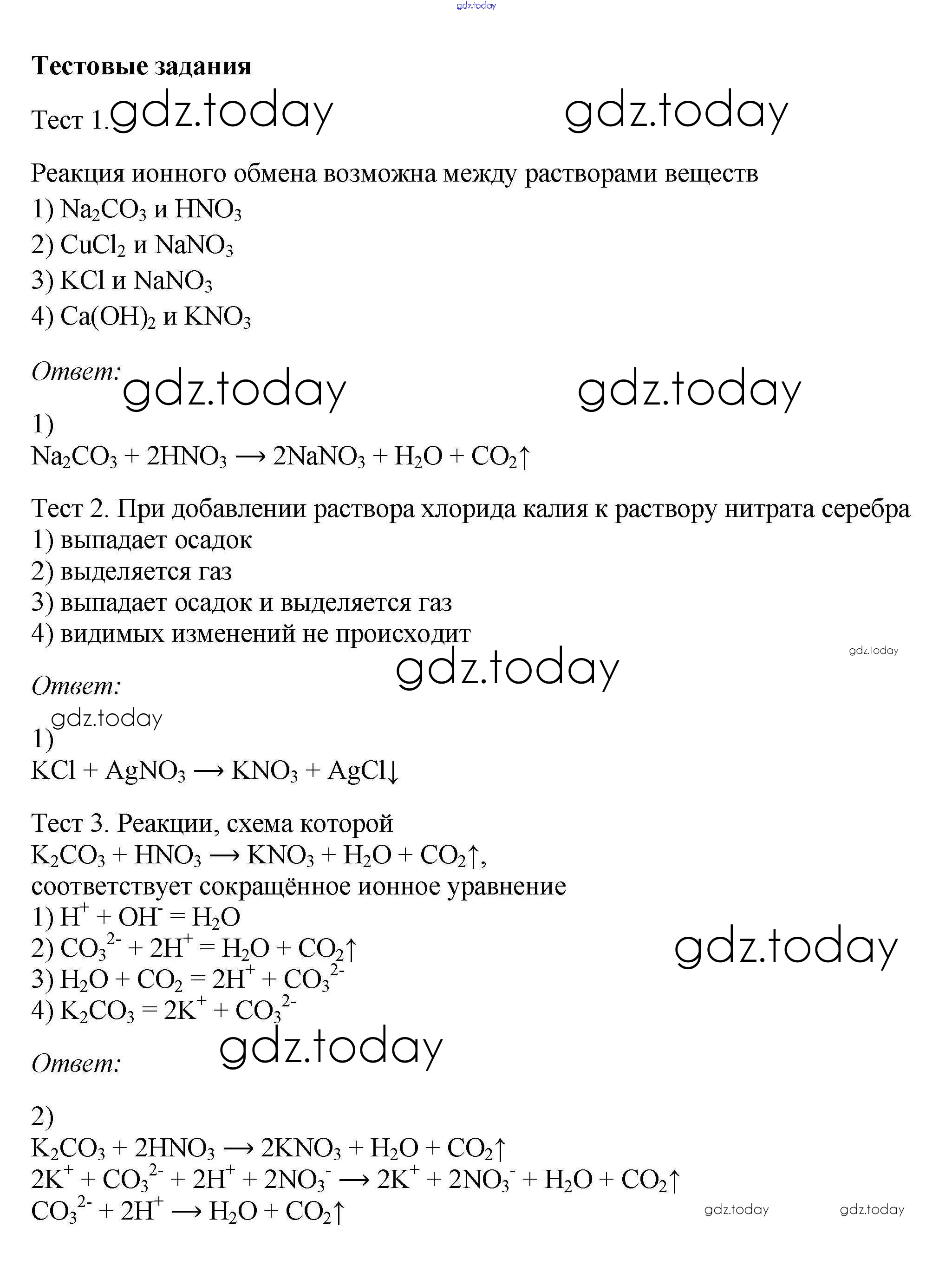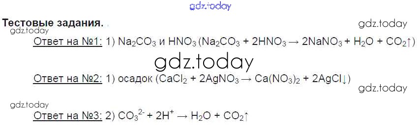 Ответы к § 9. Реакции ионного обмена Решение к новому изданию тестовое задание Учебнику по Химии для 9 класса Рудзитис, Фельдман Просвещение УМК 2016