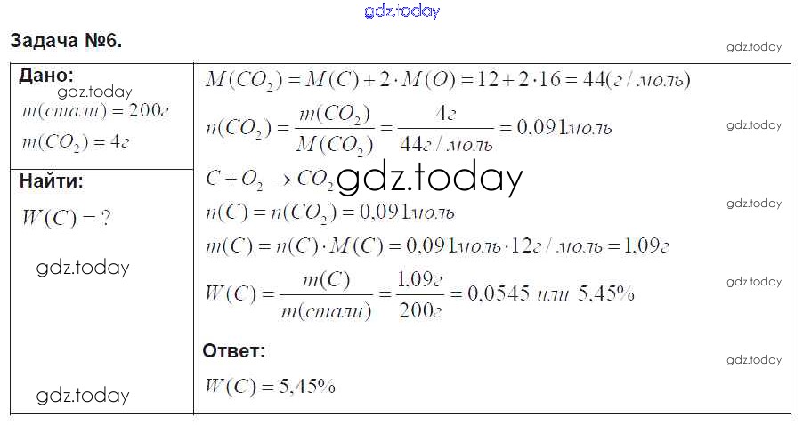 На страницах сайта gdz.today вы найдете учебный и вспомогательный материал, направленный на улучшения знаний школьной программы. ГДЗ - онлайн мир знаний Задачи к §45-47 Решение к старому изданию задача №6 Учебнику по Химии для 9 класса Рудзитис, Фельдман Просвещение УМК 2016