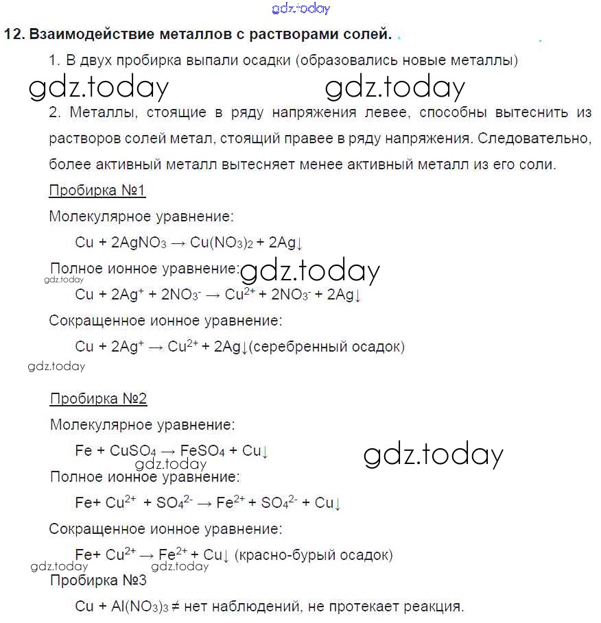 На страницах сайта gdz.today вы найдете учебный и вспомогательный материал, направленный на улучшения знаний школьной программы. ГДЗ - онлайн мир знаний Лабораторные опыты Решение к старому изданию 12 Учебнику по Химии для 9 класса Рудзитис, Фельдман Просвещение УМК 2016