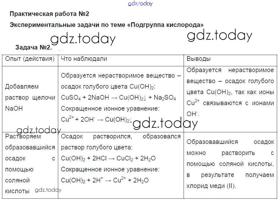 На страницах сайта gdz.today вы найдете учебный и вспомогательный материал, направленный на улучшения знаний школьной программы. ГДЗ - онлайн мир знаний ПР-2 Практические работы задача №2 Учебнику по Химии для 9 класса Рудзитис, Фельдман Просвещение УМК 2016