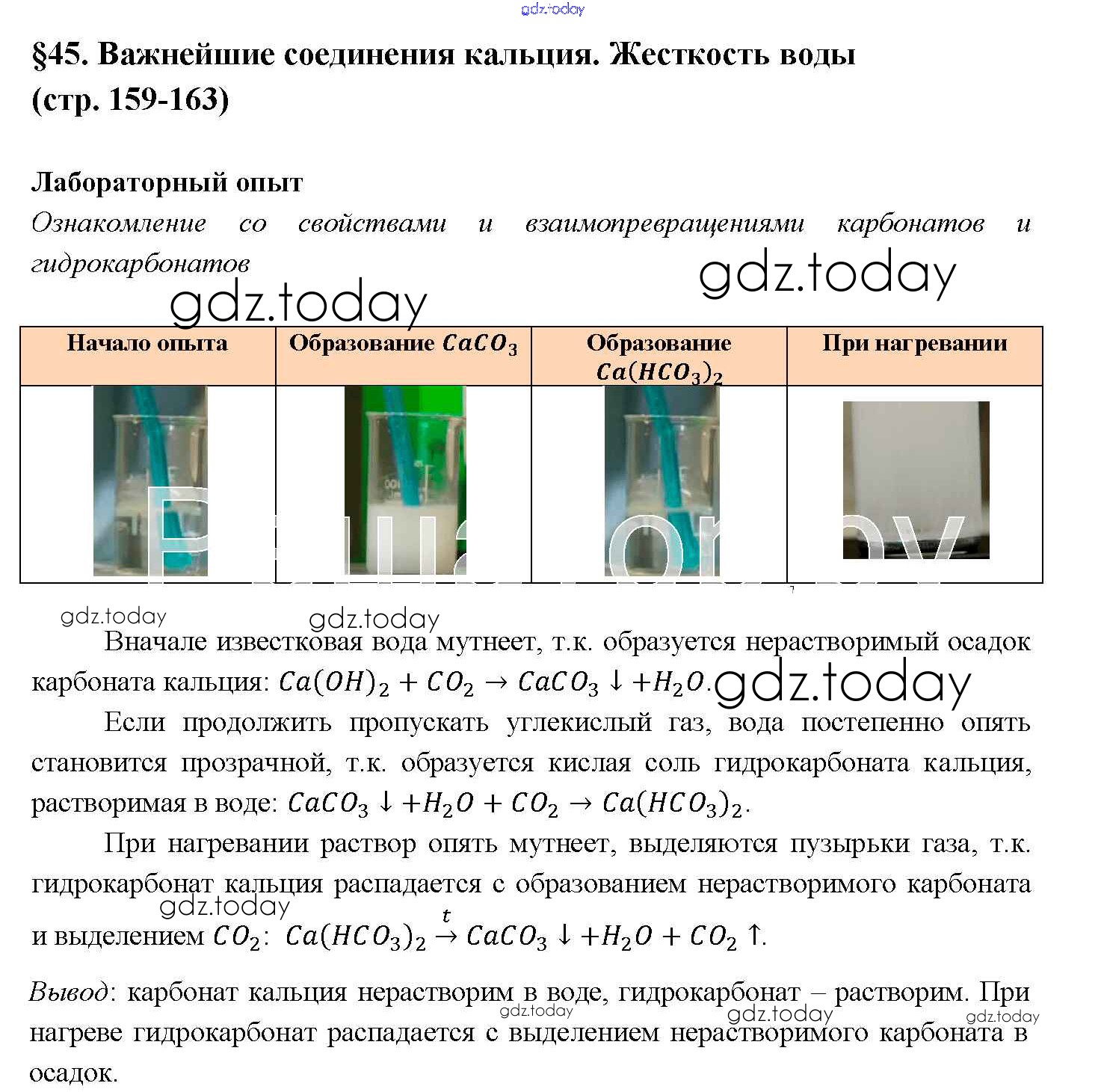 Ответы к § 45. Важнейшие соединения кальция. Жесткость воды Решение к новому изданию Лабораторный опыт Учебнику по Химии для 9 класса Рудзитис, Фельдман Просвещение УМК 2016