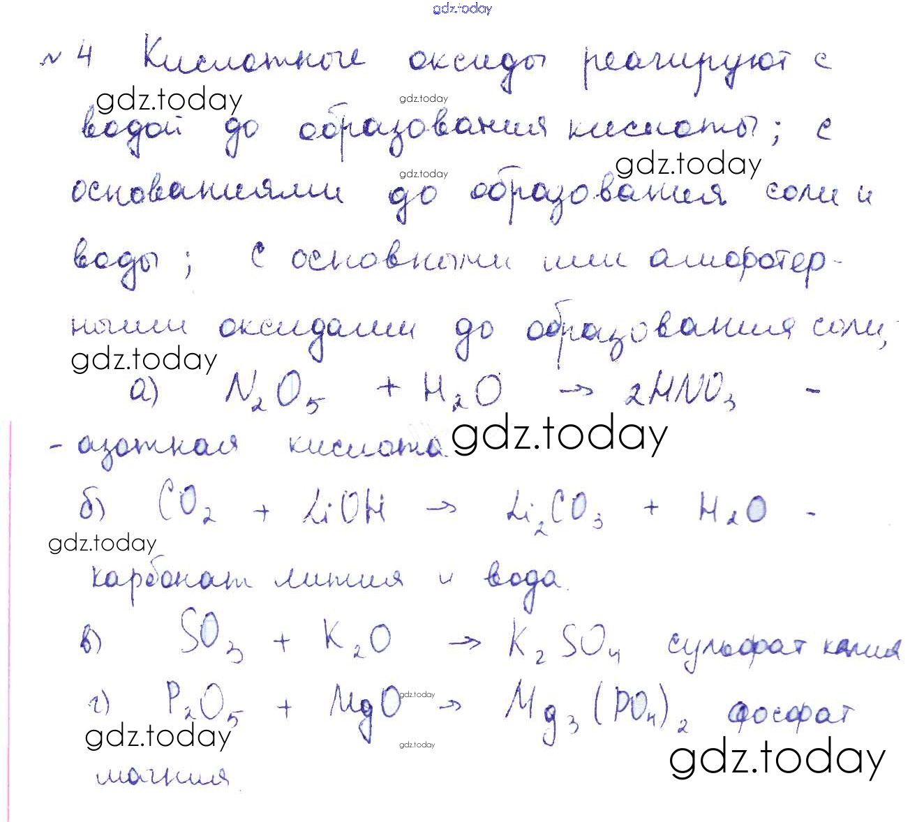 На страницах сайта gdz.today вы найдете учебный и вспомогательный материал, направленный на улучшения знаний школьной программы. ГДЗ - онлайн мир знаний Решение к §1. Основные классы неорганических веществ 4 Учебнику по Химии для 9 класса Шиманович, Василевская Народная асвета 2019