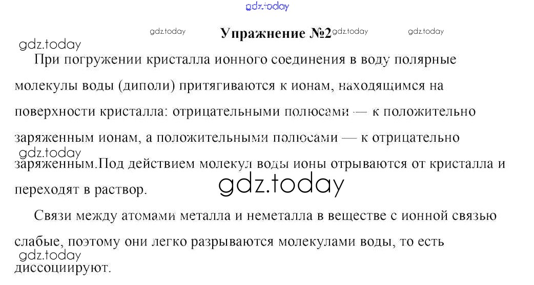 На страницах сайта gdz.today вы найдете учебный и вспомогательный материал, направленный на улучшения знаний школьной программы. ГДЗ - онлайн мир знаний Решение к §8. Электролитическая диссоциация веществ 2 Учебнику по Химии для 9 класса Шиманович, Василевская Народная асвета 2019