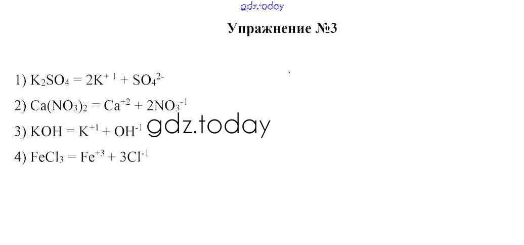 На страницах сайта gdz.today вы найдете учебный и вспомогательный материал, направленный на улучшения знаний школьной программы. ГДЗ - онлайн мир знаний Решение к §8. Электролитическая диссоциация веществ 3 Учебнику по Химии для 9 класса Шиманович, Василевская Народная асвета 2019