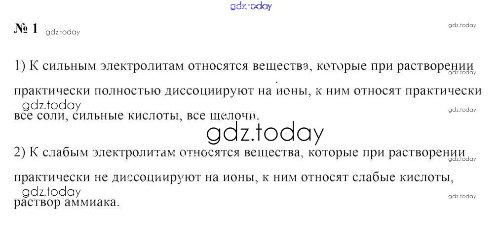 На страницах сайта gdz.today вы найдете учебный и вспомогательный материал, направленный на улучшения знаний школьной программы. ГДЗ - онлайн мир знаний Решение к §10. Сильные и слабые электролиты 1 Учебнику по Химии для 9 класса Шиманович, Василевская Народная асвета 2019