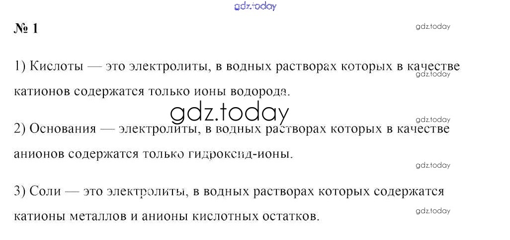 На страницах сайта gdz.today вы найдете учебный и вспомогательный материал, направленный на улучшения знаний школьной программы. ГДЗ - онлайн мир знаний Решение к §11. Электролитическая диссоциация кислот, оснований и солей 1 Учебнику по Химии для 9 класса Шиманович, Василевская Народная асвета 2019
