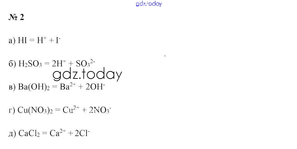 На страницах сайта gdz.today вы найдете учебный и вспомогательный материал, направленный на улучшения знаний школьной программы. ГДЗ - онлайн мир знаний Решение к §11. Электролитическая диссоциация кислот, оснований и солей 2 Учебнику по Химии для 9 класса Шиманович, Василевская Народная асвета 2019