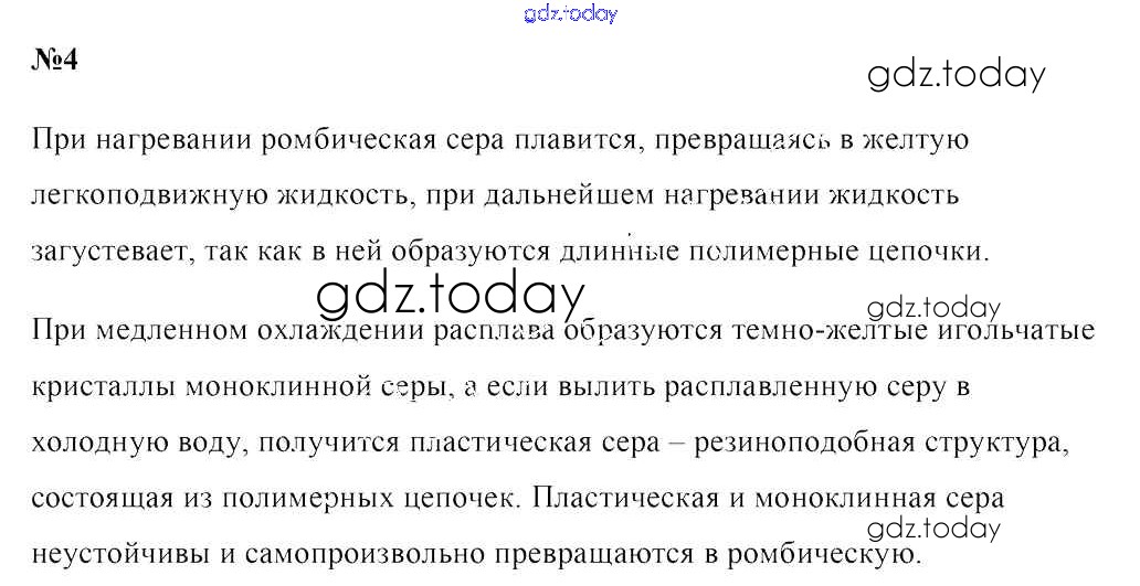 На страницах сайта gdz.today вы найдете учебный и вспомогательный материал, направленный на улучшения знаний школьной программы. ГДЗ - онлайн мир знаний Решение к §19. Сера — химический элемент и простое вещество 4 Учебнику по Химии для 9 класса Шиманович, Василевская Народная асвета 2019