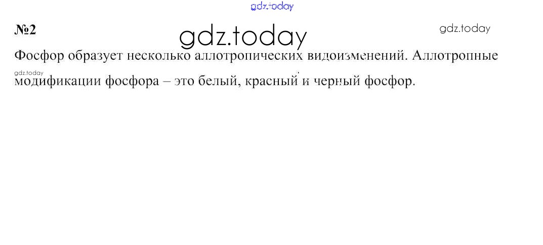 На страницах сайта gdz.today вы найдете учебный и вспомогательный материал, направленный на улучшения знаний школьной программы. ГДЗ - онлайн мир знаний Решение к §27. Фосфор — химический элемент и простое вещество 2 Учебнику по Химии для 9 класса Шиманович, Василевская Народная асвета 2019