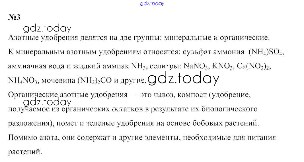 На страницах сайта gdz.today вы найдете учебный и вспомогательный материал, направленный на улучшения знаний школьной программы. ГДЗ - онлайн мир знаний Решение к §29. Минеральные удобрения 3 Учебнику по Химии для 9 класса Шиманович, Василевская Народная асвета 2019