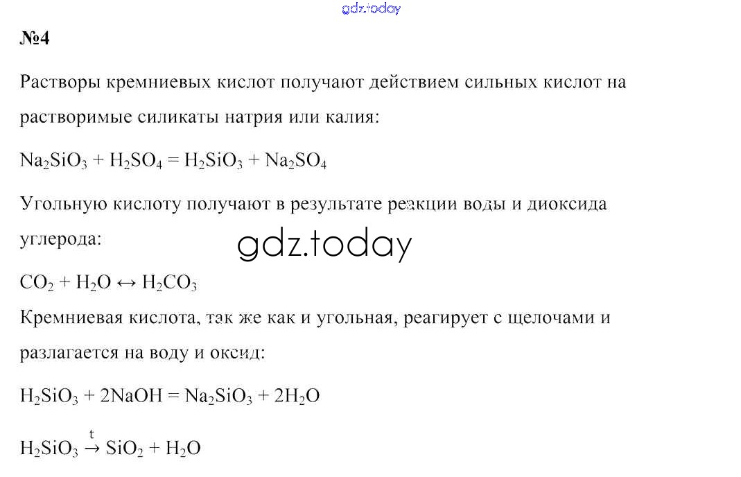 На страницах сайта gdz.today вы найдете учебный и вспомогательный материал, направленный на улучшения знаний школьной программы. ГДЗ - онлайн мир знаний Решение к §37. Оксид кремния(IV). Кремниевая кислота и ее соли 4 Учебнику по Химии для 9 класса Шиманович, Василевская Народная асвета 2019