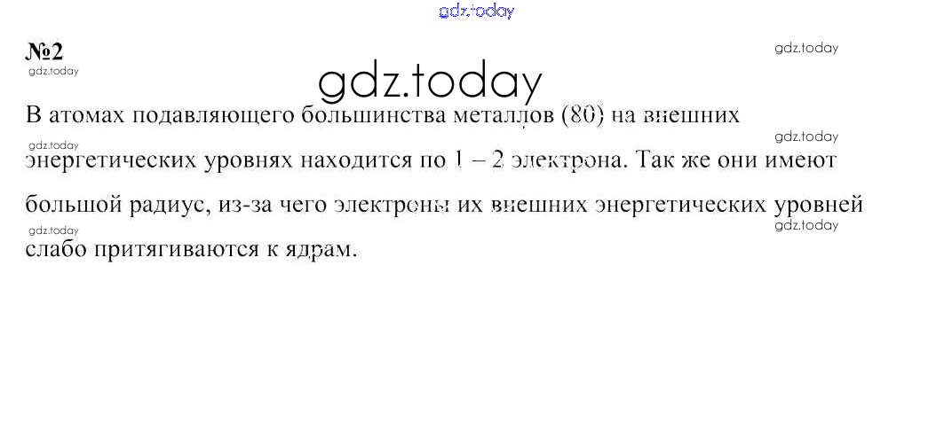 На страницах сайта gdz.today вы найдете учебный и вспомогательный материал, направленный на улучшения знаний школьной программы. ГДЗ - онлайн мир знаний Решение к §40. Металлы. Общая характеристика элементов 2 Учебнику по Химии для 9 класса Шиманович, Василевская Народная асвета 2019