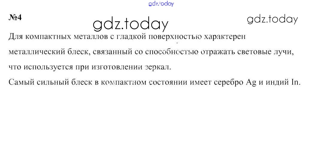На страницах сайта gdz.today вы найдете учебный и вспомогательный материал, направленный на улучшения знаний школьной программы. ГДЗ - онлайн мир знаний Решение к §41. Простые вещества металлы. Физические свойства металлов 4 Учебнику по Химии для 9 класса Шиманович, Василевская Народная асвета 2019